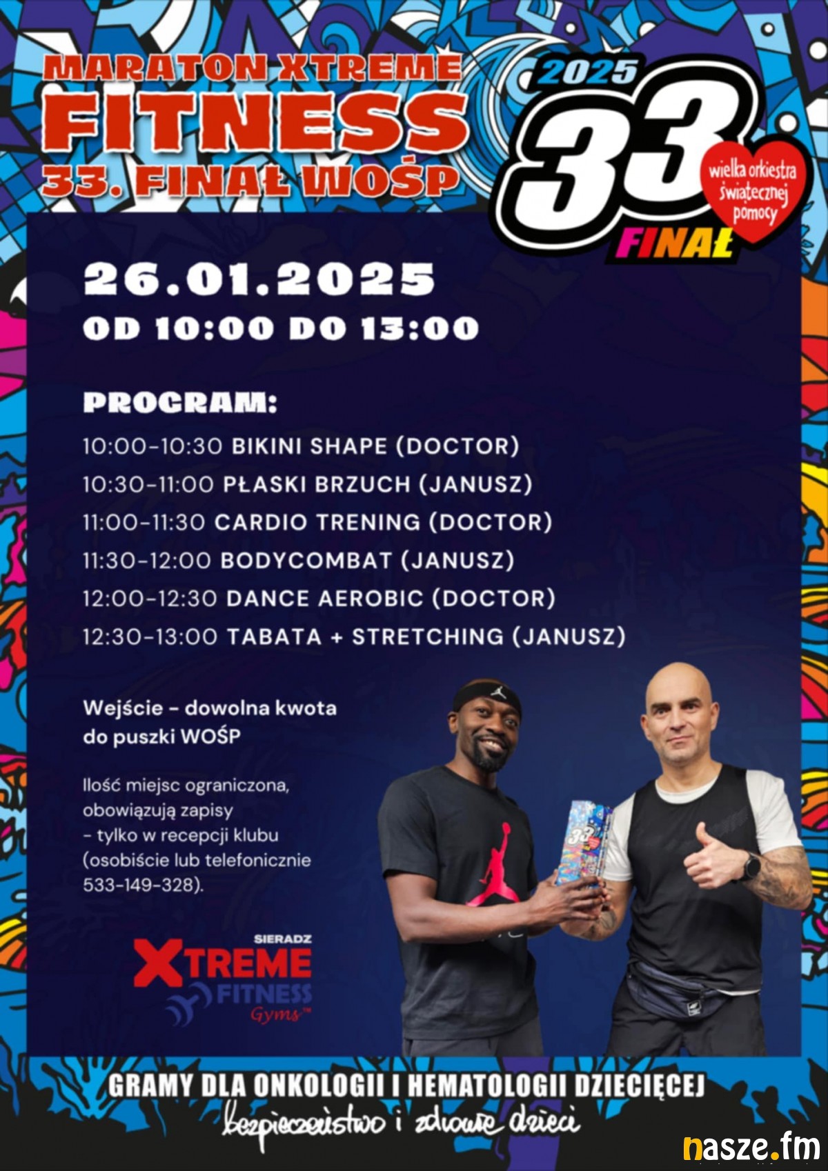 Po raz pierwszy do akcji WOŚP dołącza Xtreme Fitness Sieradz. 26 stycznia w godzinach 10:00-13:00 odbędzie się tam Maraton Fitness, którego uczestnicy będą mogli wesprzeć zbiórkę poprzez wrzucenie dowolnej kwoty do puszki WOŚP.