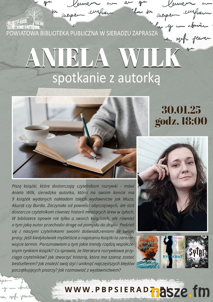 Podczas spotkania w PBP w Sieradzu, które rozpocznie się o godz. 18:00 będzie też można dowiedzieć się, jak wygląda proces tworzenia książki – od pierwszego pomysłu aż po publikację. Autorka opowie też o tajnikach pracy pisarza: jak unikać błędów, znaleźć swój styl i pisać historie, które przyciągną czytelników.