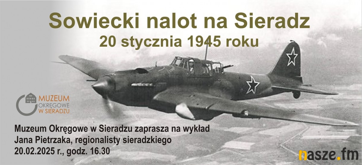 Z kolei w przyszłym tygodniu, w czwartek 20 lutego Muzeum Okręgowe w Sieradzu zaprasza na wykład Jana Pietrzaka, regionalisty sieradzkiego pt. "Sowiecki nalot na Sieradz 20 stycznia 1945 roku".