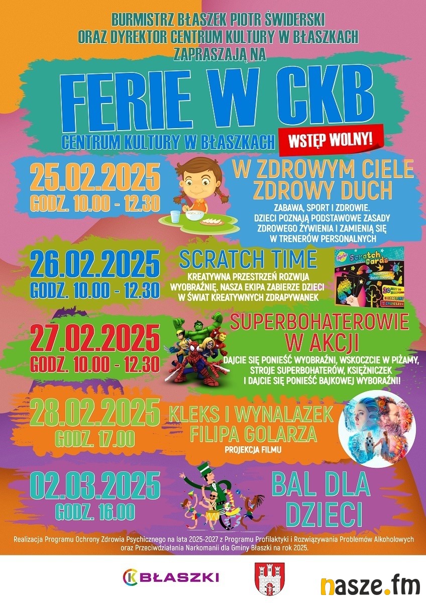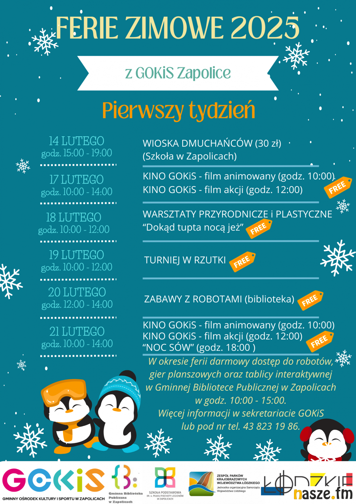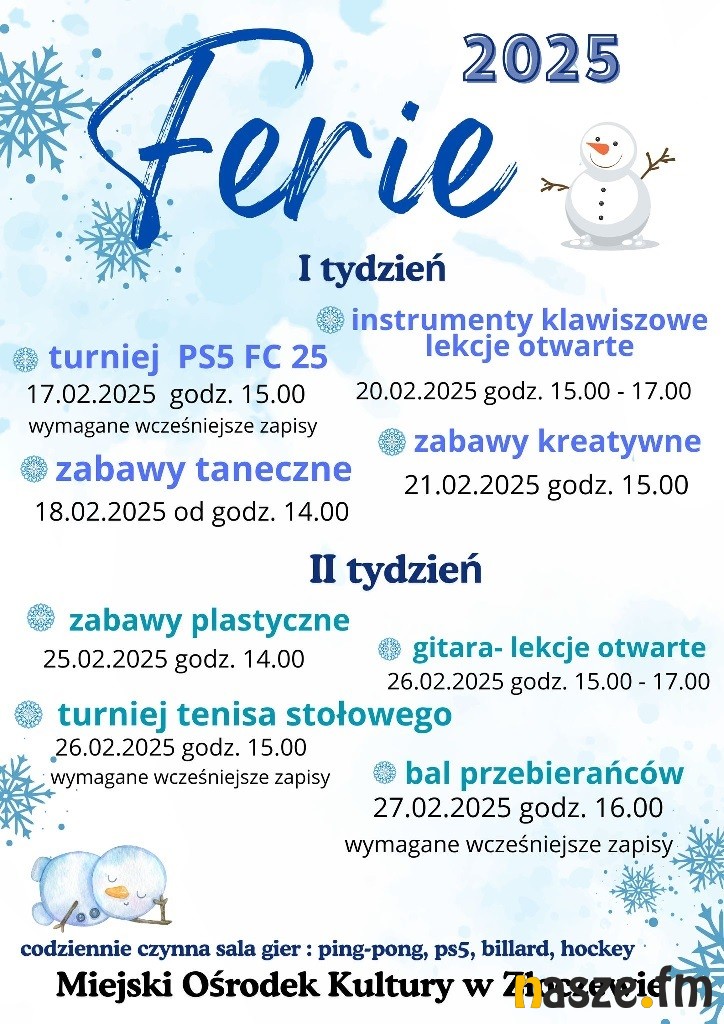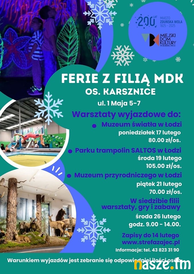 W Zduńskiej Woli dzieci i młodzież, które nigdzie nie wyjeżdżają mogą skorzystać z oferty przygotowanej przez placówki takie jak Miejski Dom Kultury, Dom Kultury Lokator, Dom Kultury "Na pięterku" czy przez Miejską Bibliotekę Publiczną. Z feryjnym programem możecie zapoznać się na zamieszczonych plakatach: