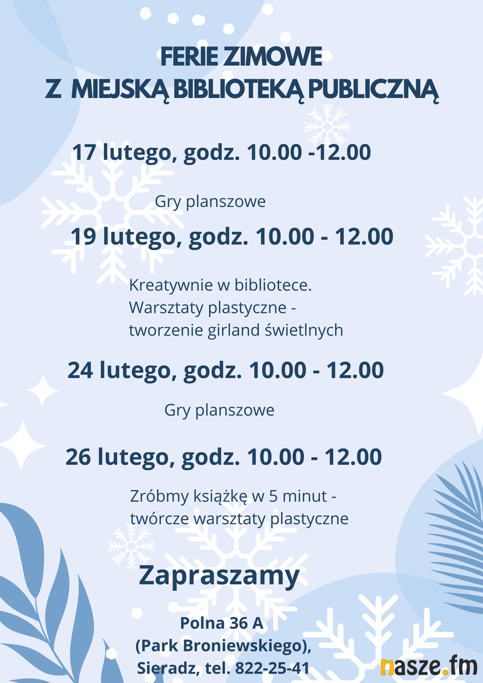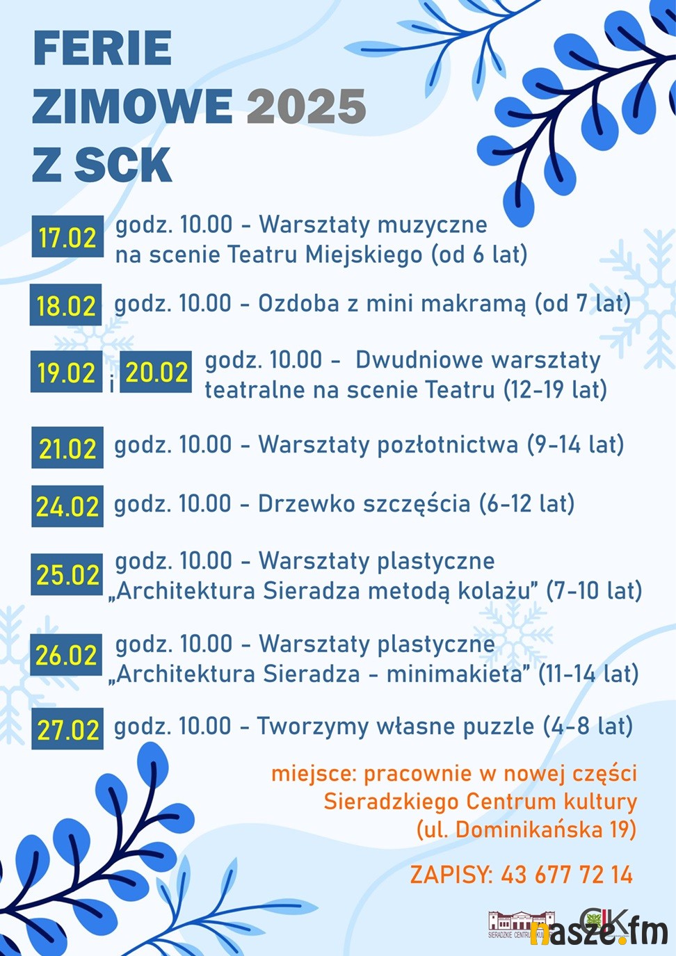 W Sieradzu zajęcia dla dzieci i młodzieży na czas ferii zaplanowały Sieradzkie Centrum Kultury i biblioteki, zarówno miejska jak i powiatowa. Bedzie też można wziąć udział w zajęciach sportowych.