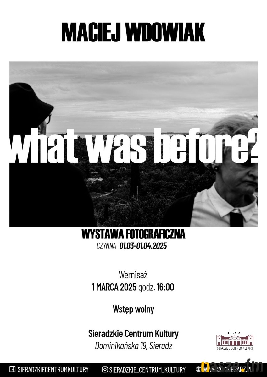 Sieradzkie Centrum Kultury zaprasza jutro na otwarcie wystawy fotografii "What was before?", czyli "Co było wcześniej?". To podróż przez ostatnie lata fotograficznej przygody Macieja Wdowiaka.