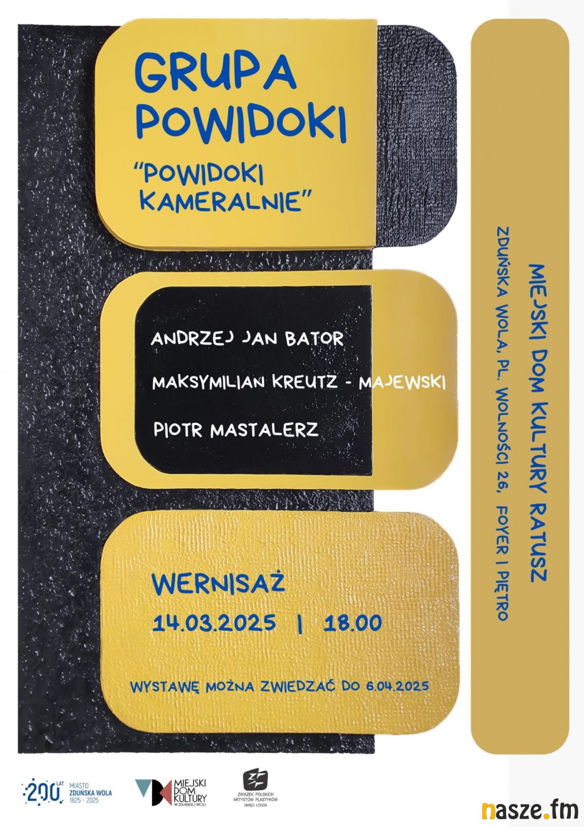 Wernisaż wystawy artystów zaplanowano na 14 marca, godz. 18.00, foyer Miejskiego Domu Kultury Ratusz w Zduńskiej Woli. Wystawę "Powidoki kameralnie" zwiedzać będzie można do 6 kwietnia.