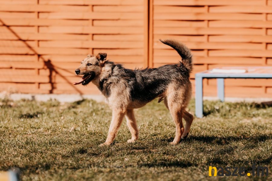 Maszka to średniej wielkości, około 17-kilogramowa suczka w typie szorstkowłosych psów – z tą cudną, rozczochraną mordką i wiecznie czujnym spojrzeniem. Jest bardzo sfokusowana na otoczeniu – wszystko ją interesuje, wszystko trzeba sprawdzić, powąchać, obiec dookoła. Komend jeszcze nie zna, ale jest w trakcie nauki chodzenia na smyczy i już robi postępy!
