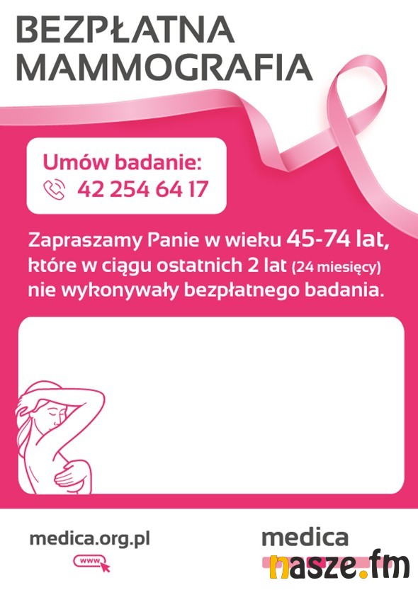Rejestracja już ruszyła! Zapraszamy Panie w wieku od 45-74 lat, które przez ostatnie 2 lata ( 24 miesiące ) nie korzystały z bezpłatnego badania. Wystarczy zadzwonić pod numer: 42 254 64 17 i umówić się na konkretną godzinę. Liczba miejsc jest ograniczona.