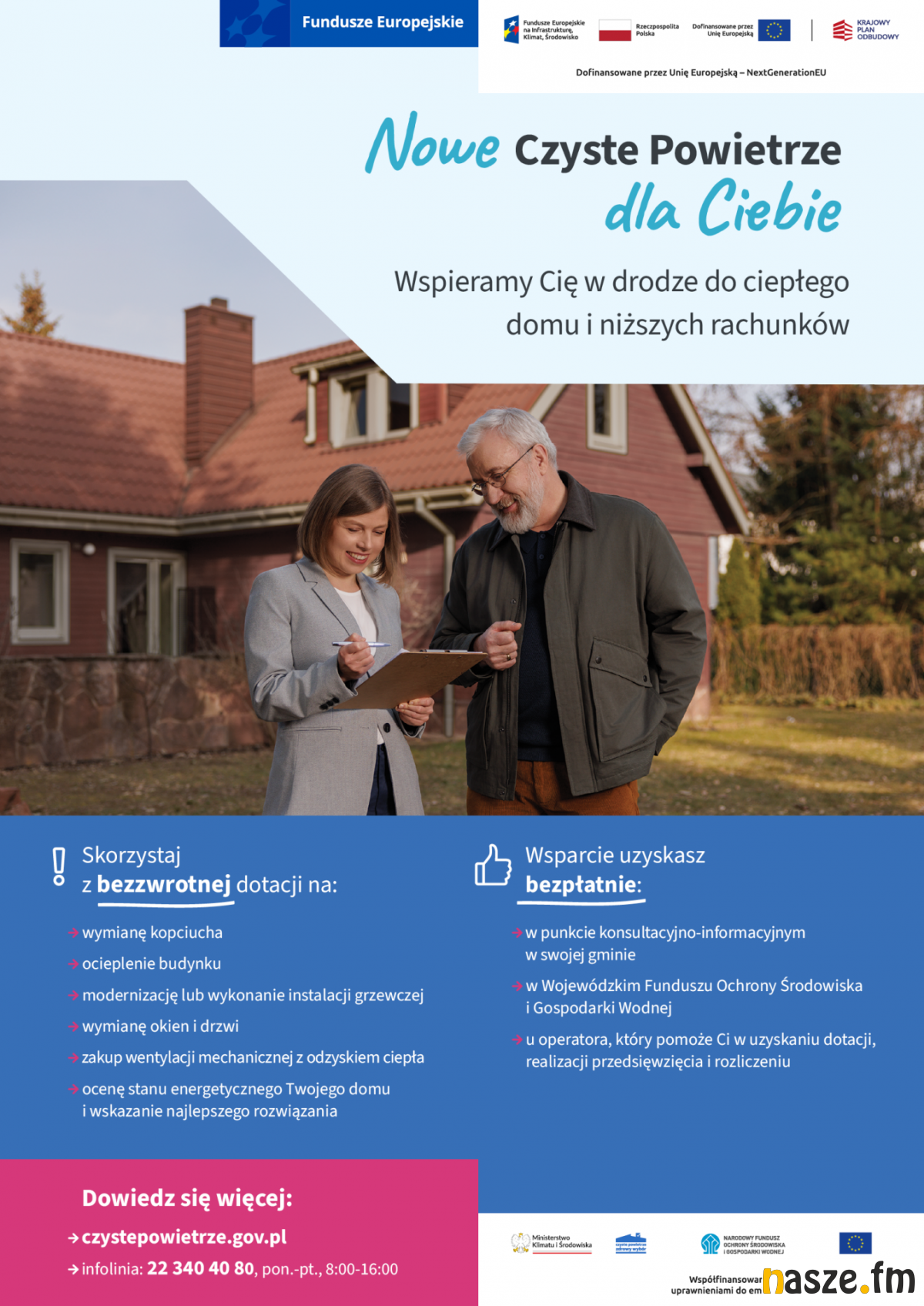 Informacje dotyczące programu udzielane są w punktach konsultacyjno-informacyjnych "Czystego Powietrza", które działają w samorządach miejskich lub gminnych, na ogólnopolskiej infolinii - tel. (22) 340 40 80 oraz na stronie: https://czystepowietrze.gov.pl/