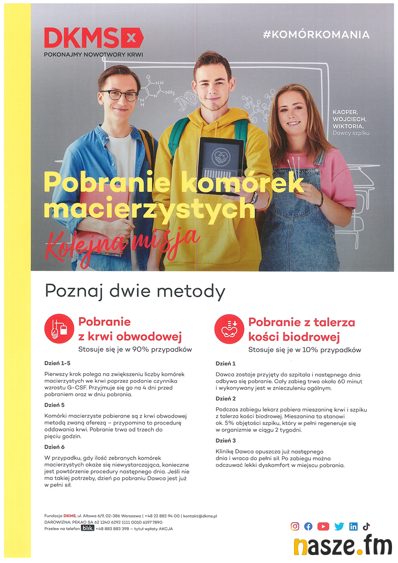 W Polsce co 40 minut ktoś dowiaduje się, że choruje na nowotwór krwi. Tę diagnozę słyszą rodzice małych dzieci, młodzi, dorośli. Na szczęście każdy może pomóc. Dla wielu chorych jedyną szansą na życie jest przeszczepienie szpiku lub komórek macierzystych od niespokrewnionego dawcy.