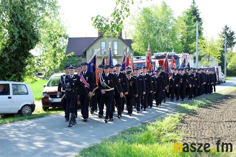 Niedzielną uroczystość rozpoczęła polowa msza św., którą odprawili ks. dziekan Eugeniusz Budkowski oraz ojciec Andrzej Szczypta, były gwardian klasztoru w Warcie. Następnie ruszyła oficjalna część jubileuszowej uroczystości z rysem historycznym jednostki oraz odsłonięciem tablicy pamiątkowej na frontowej ścianie remizy OSP Grzybki.