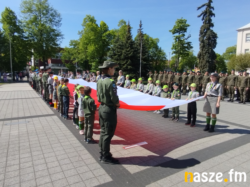 Flagi państwowe na maszt, odśpiewany wspólnie hymn narodowy, biało - czerwone chorągiewki rozdawane mieszkańcom. W regionie upamiętniliśmy dziś Święto Flagi RP.