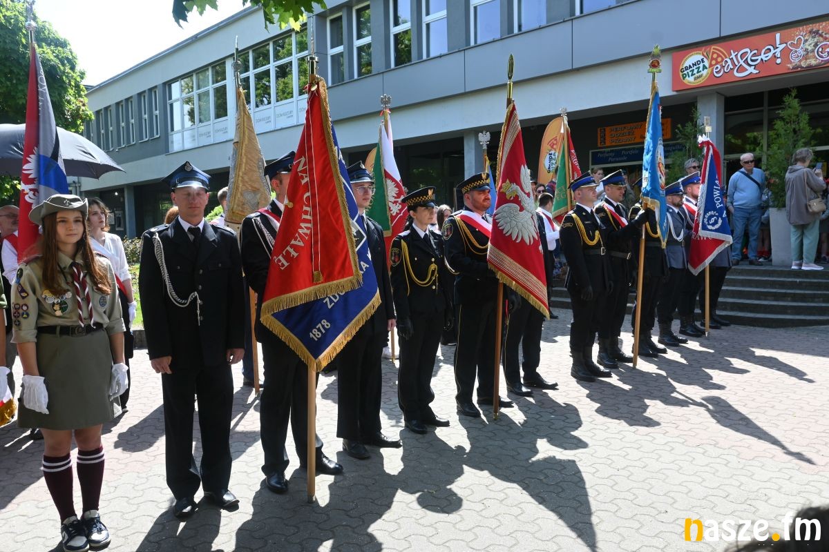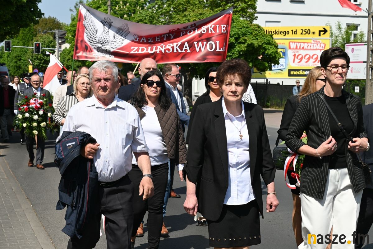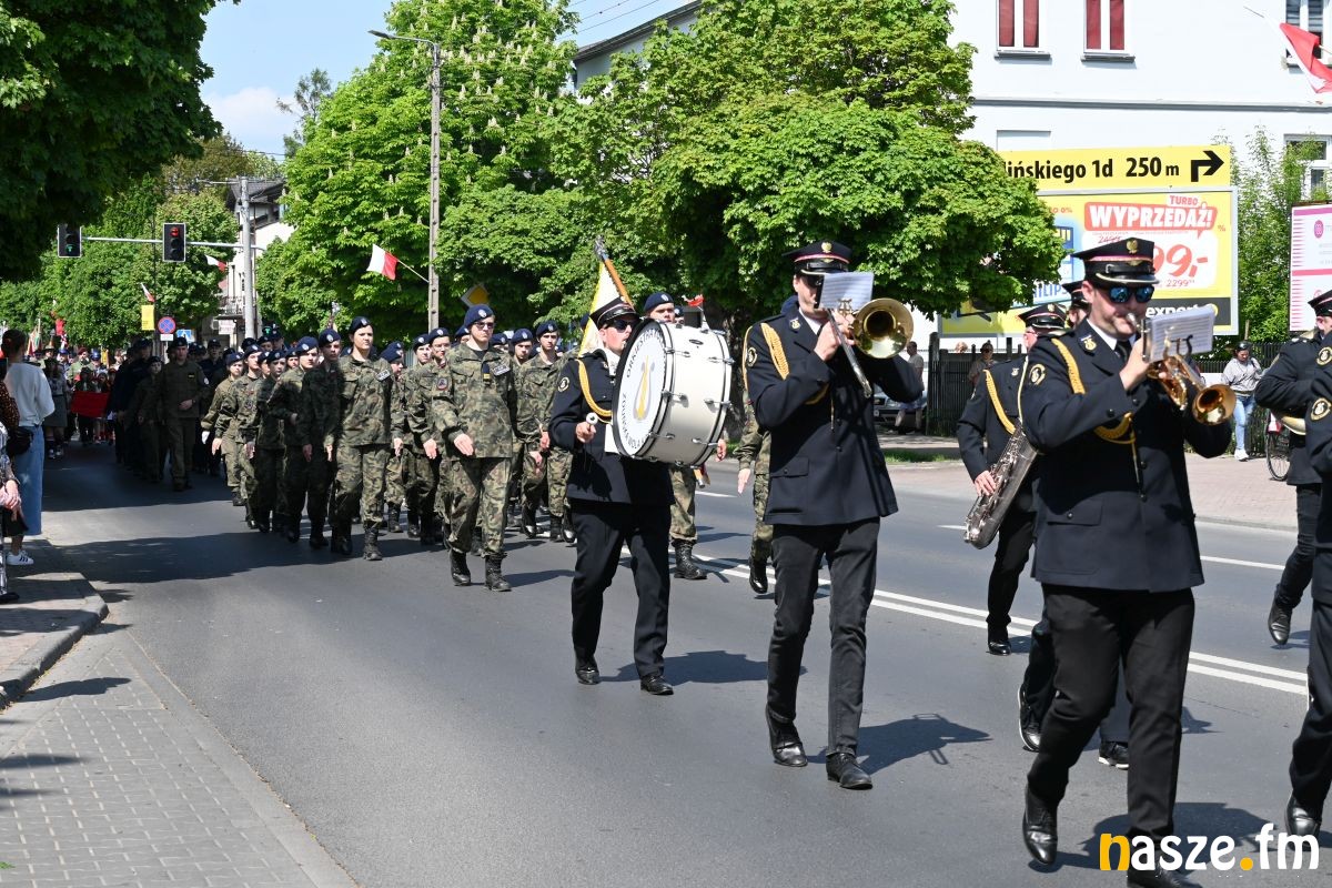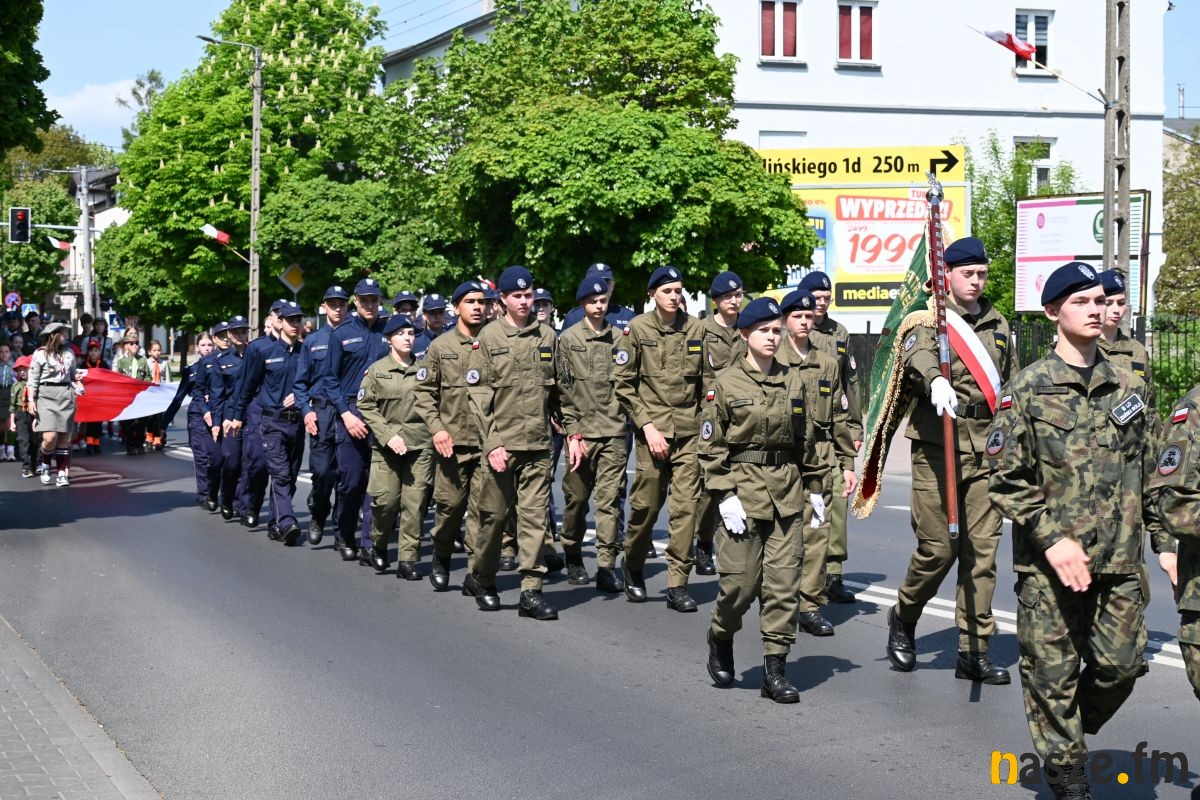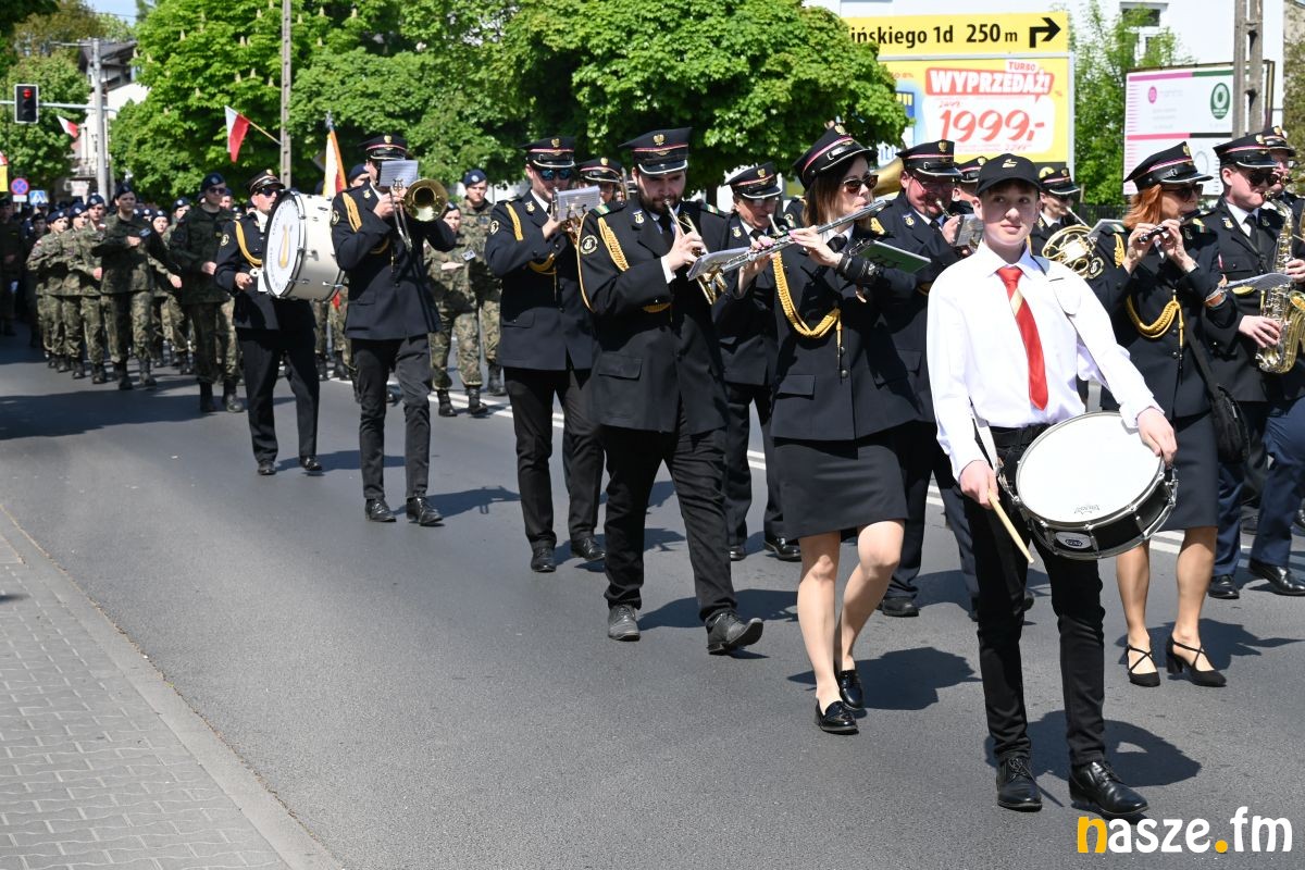 Po nabożeństwie uczestnicy przemaszerowali ulicami miasta przed pomnik Konstytucji 3 Maja. Pochód prowadziła orkiestra dęta, a uroczysty charakter wydarzenia podkreślały sztandary i biało-czerwone flagi.