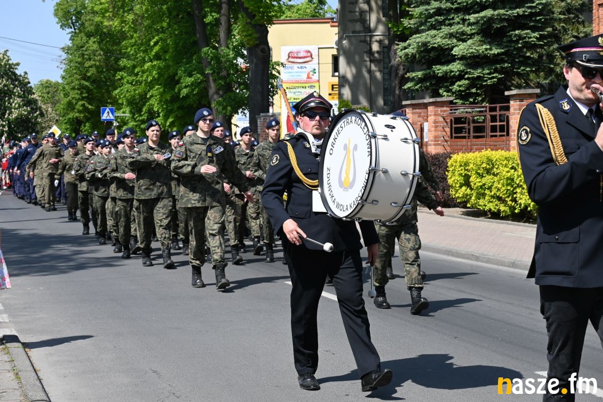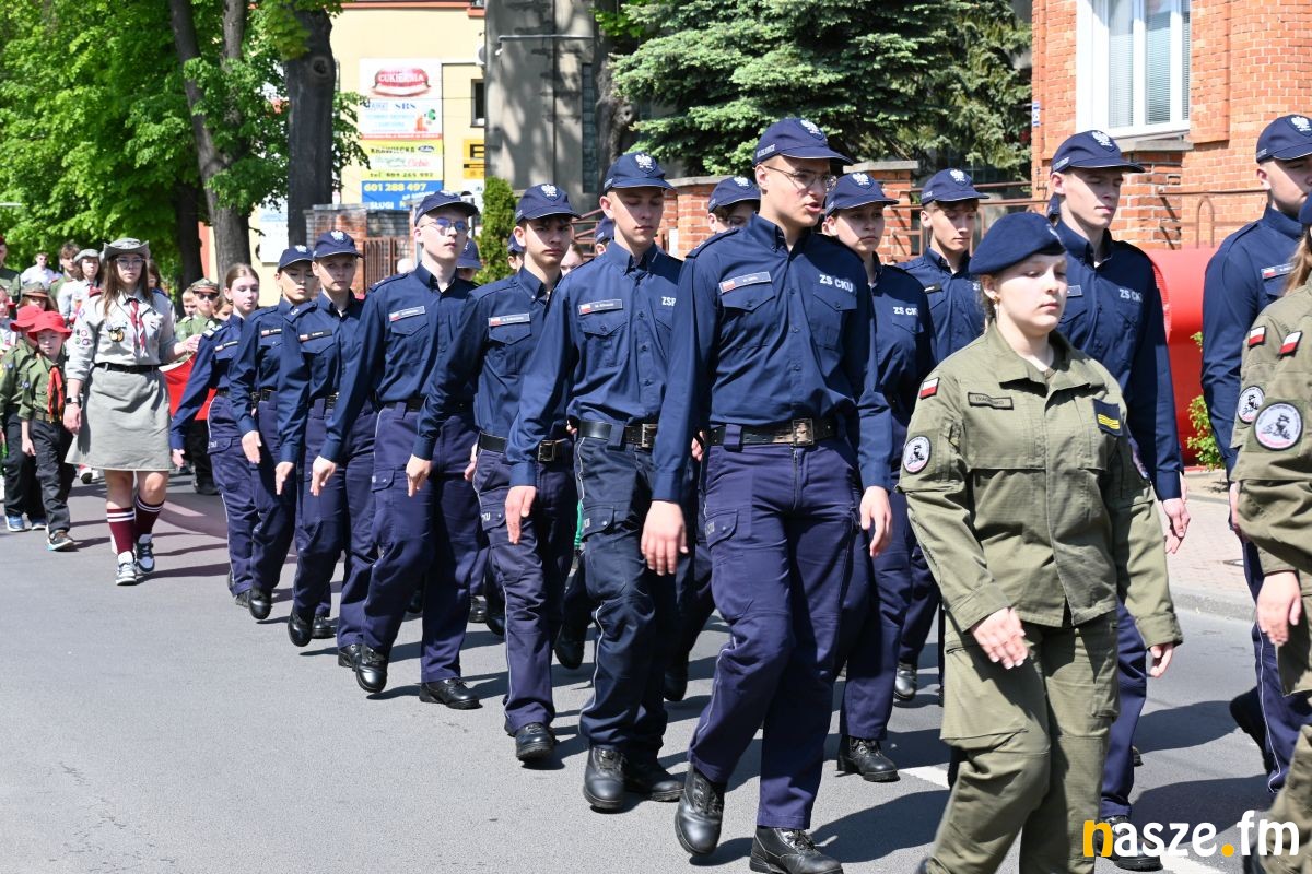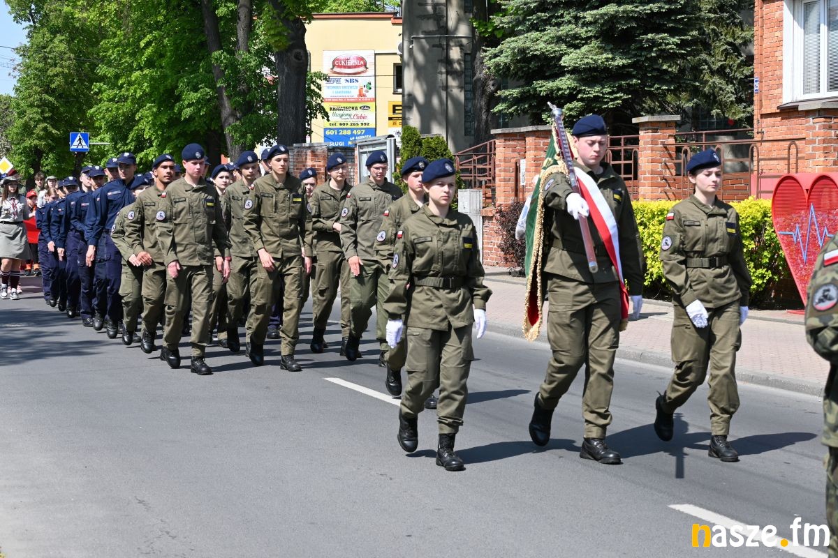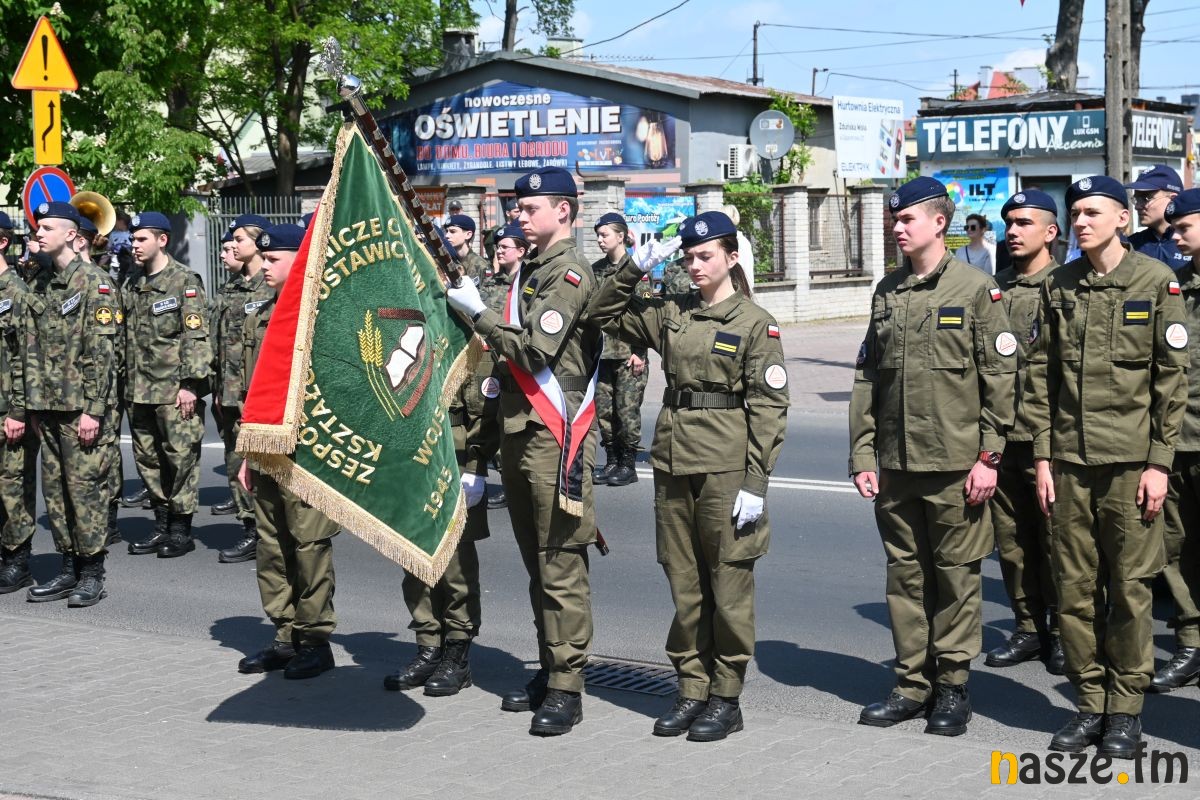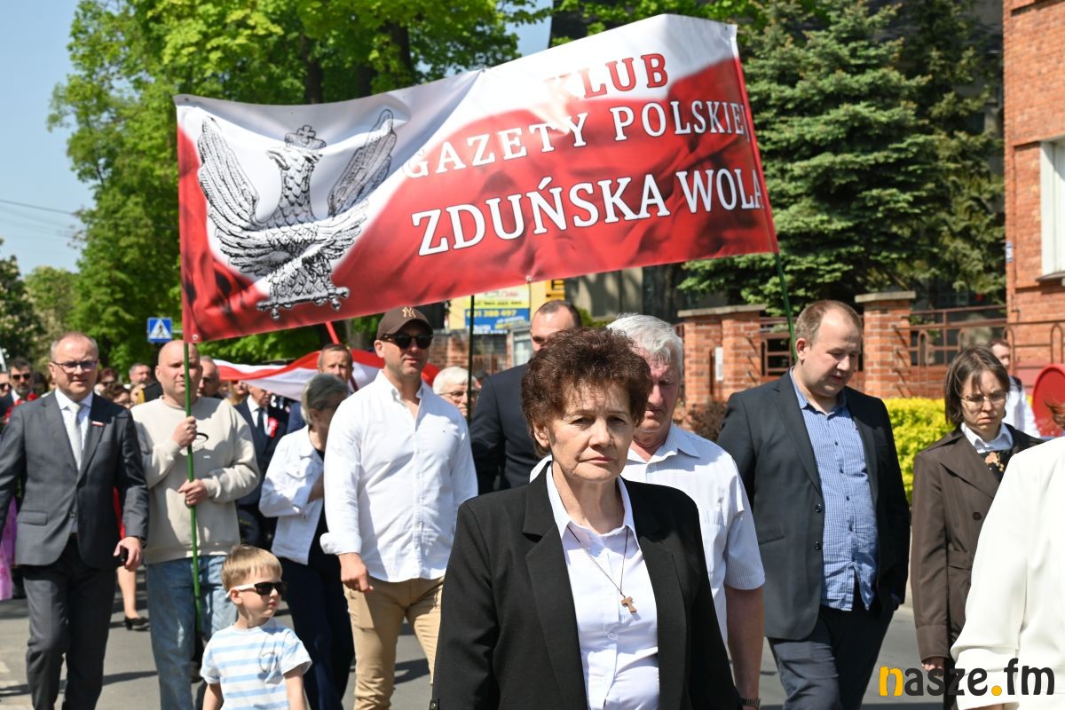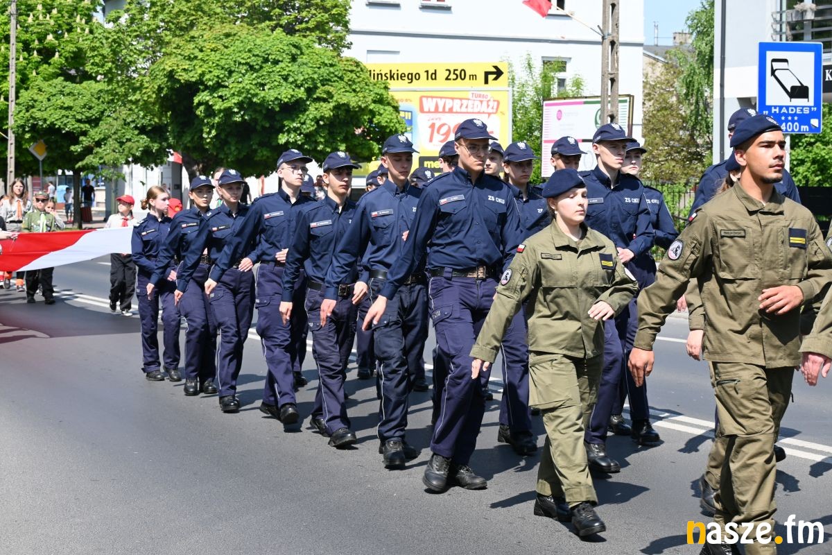 Po nabożeństwie uczestnicy przemaszerowali ulicami miasta przed pomnik Konstytucji 3 Maja. Pochód prowadziła orkiestra dęta, a uroczysty charakter wydarzenia podkreślały sztandary i biało-czerwone flagi.