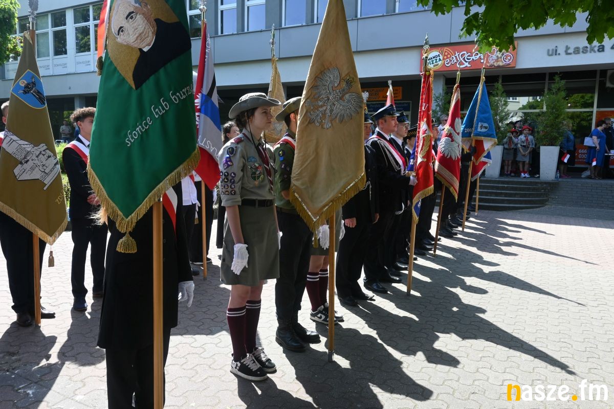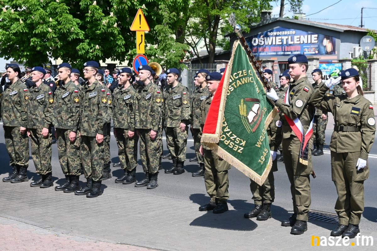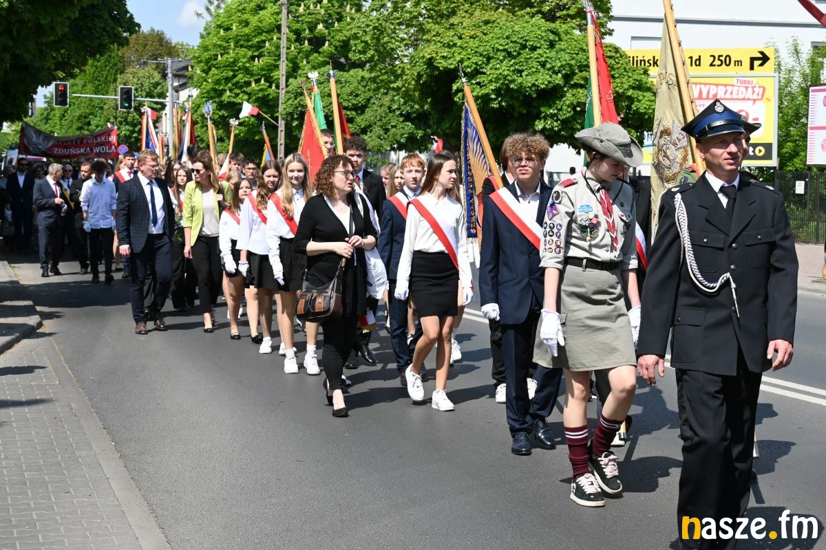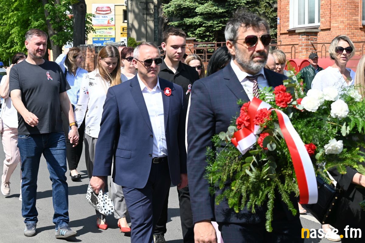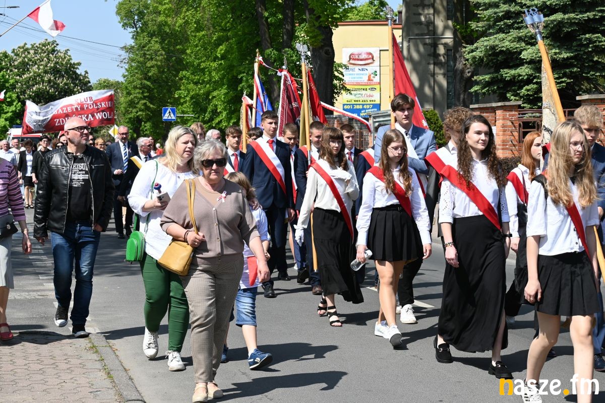 Po nabożeństwie uczestnicy przemaszerowali ulicami miasta przed pomnik Konstytucji 3 Maja. Pochód prowadziła orkiestra dęta, a uroczysty charakter wydarzenia podkreślały sztandary i biało-czerwone flagi.