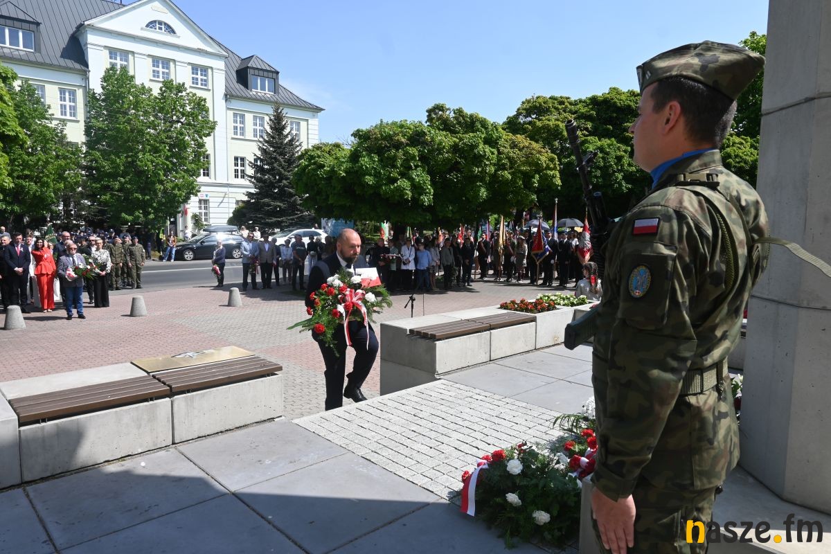 O godzinie 12:00 rozpoczęła się oficjalna część uroczystości pod pomnikiem. Głos zabrali przedstawiciele władz lokalnych, którzy w swoich przemówieniach nawiązali do znaczenia Konstytucji 3 Maja jako symbolu dążenia do wolności, sprawiedliwości i nowoczesnego państwa. Następnie złożono kwiaty i oddano hołd twórcom pierwszej polskiej konstytucji.