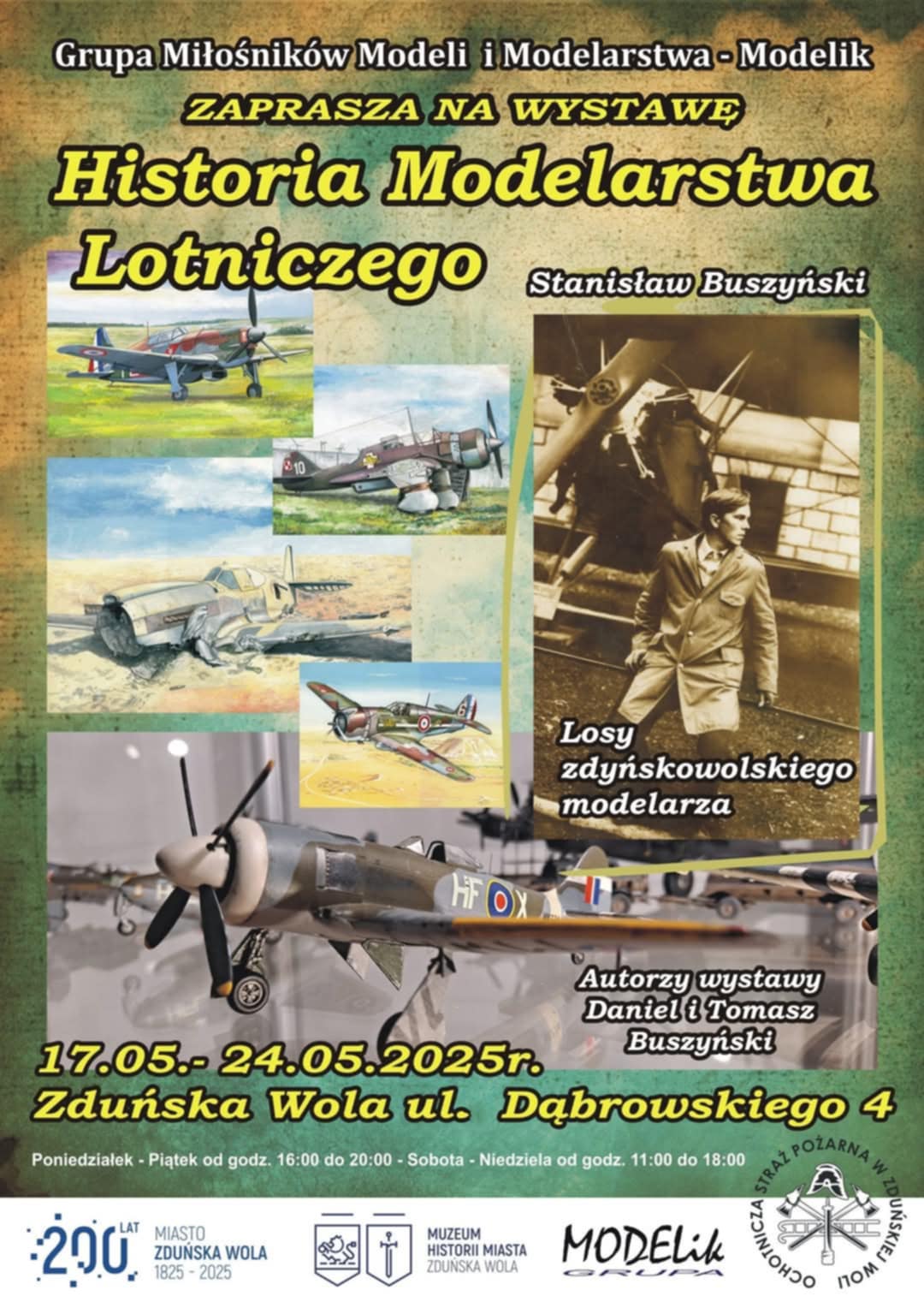 Wystawa jest próbą opowiedzenia historii modelarstwa poprzez pryzmat losów jednej osoby. Stanisław Buszyński (1939-2021) był rodowitym zduńskowolaninem, malarzem amatorem, miłośnikiem modelarstwa oraz lotnictwa. Specjalizował się w malarstwie militarnym. Miało to związek z jego pracą jako ilustratora okładek modeli kartonowych łódzkiej firmy GPM. Łącznie ozdobił on pierwsze strony ponad 140 modeli. Do dziś można odnaleźć je na półkach sklepów modelarskich w całej Polsce, a także na rynku kolekcjonerskim – zarówno krajowym jak i zagranicznym. Dzięki temu prace skromnego zduńskowolskiego artysty amatora zyskały zasięg wykraczający daleko poza granice Polski. Na wystawie będzie można obejrzeć kilkaset eksponatów, a wśród nich m. in.: