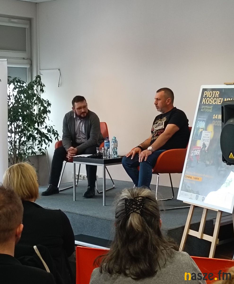 Spotkanie poprowadził Marcin Kowalski, który w swobodny i błyskotliwy sposób poprowadził rozmowę z pisarzem. Rozmowa dotyczyła zarówno najnowszych publikacji Piotra Kościelnego, jak i kulis powstawania jego książek. Autor opowiadał o inspiracjach, swojej drodze pisarskiej oraz o pracy nad dokumentacją do powieści, które często opierają się na prawdziwych wydarzeniach.