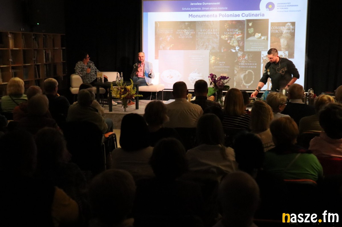 - Publiczność szczelnie wypełniła salę biblioteki, a już chwilę później wypełniły ją również niezwykłe zapachy gotujących się dań. Smaki i aromaty dawnej kuchni, choć podane w nowej odsłonie, wywołały entuzjastyczne reakcje. Były pytania, uwagi, porównania, próby odczytania dawnych przepisów. Po degustacji nikt nie miał wątpliwości: Dominik Wróblewski zdobył pełne uznanie i maksymalną ilość gwiazdek, a jego potrawy zostały jednogłośnie ocenione na najwyższym poziomie. Profesor Dumanowski mógłby opowiadać o swojej pracy godzinami, ale goście domagali się również autografów, w tym pod kolejnym wydaniem książki "Kapłony i szczeżuje". Ostatecznie obaj otrzymali owacje, które trwały onieśmielająco długo - relacjonują organizatorzy tego wydarzenia.