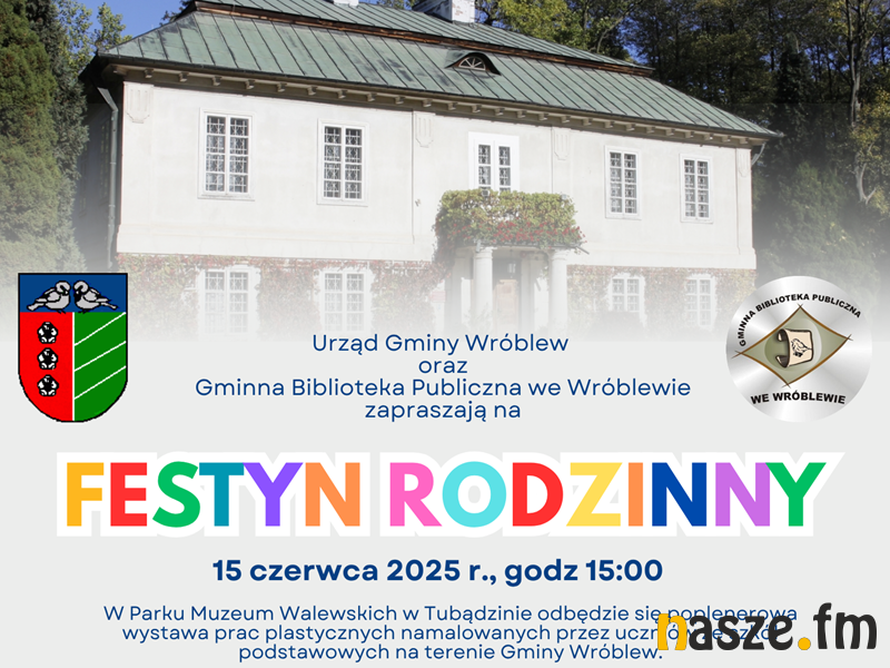 Gminna Biblioteka Publiczna we Wróblewie zaprasza na Festyn Rodzinny oraz poplenerową wystawę prac plastycznych namalowanych przez uczniów z gminnych szkół podstawowych podczas kilkudniowych plenerów malarskich. Młodzi artyści będą pracować pod okiem Pani Karoliny Antczak, Kustosz Muzeum Okręgowego w Sieradzu. Wspierać ich będą również starsi koledzy z Państwowego Liceum Sztuk Plastycznych im. Katarzyny Kobro w Zduńskiej Woli. Festyn odbędzie się w Parku Muzeum Walewskich w Tubądzinie 15 czerwca 2025 r., godz. 15.00.