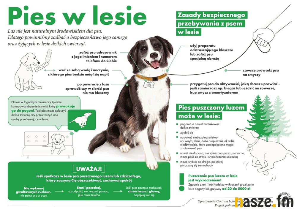 •Spacerując po lesie z psem, nie puszczajmy go luzem. Nasz domowy pupil to bliższy lub dalszy potomek jednego z najlepszych drapieżników – wilka, który wyposażył go w odpowiednie instynkty. Sama gonitwa, puszczonego luzem psa, który instynktownie podejmie pościg, np. za zającem, może skończyć się śmiercią szaraka;