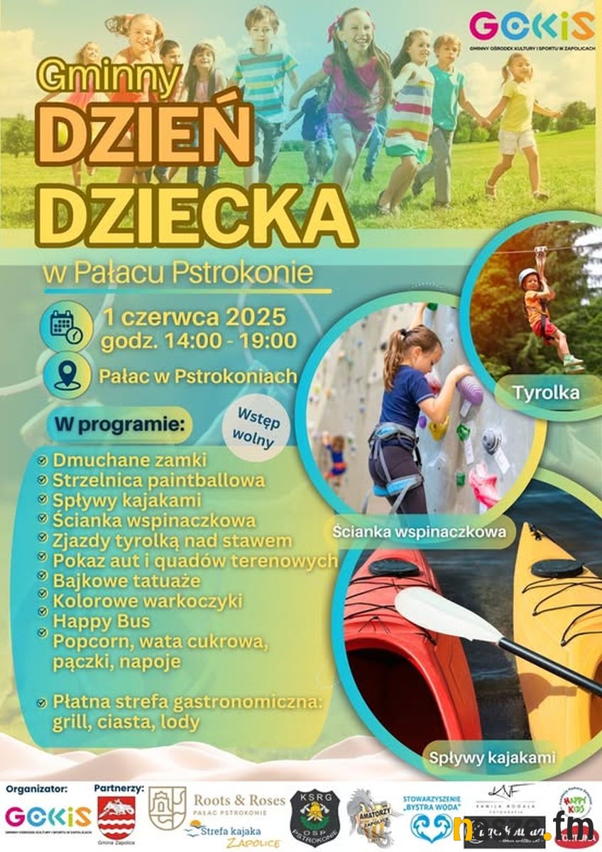 W programie dmuchańce, kajaki, paintball ,quady, jeepy, tyrolka nad stawem, ścianka wspinaczkowa, strażacy, happy bus, warkoczyki, tatuaże . Będzie także strefa gastronomiczna: popcorn, wata cukrowa, lody, pączki , ciasta , napoje, grill. Impreza w Pałacu w Pstrokoniach w godz. 14:00-19:00, wstęp wolny.