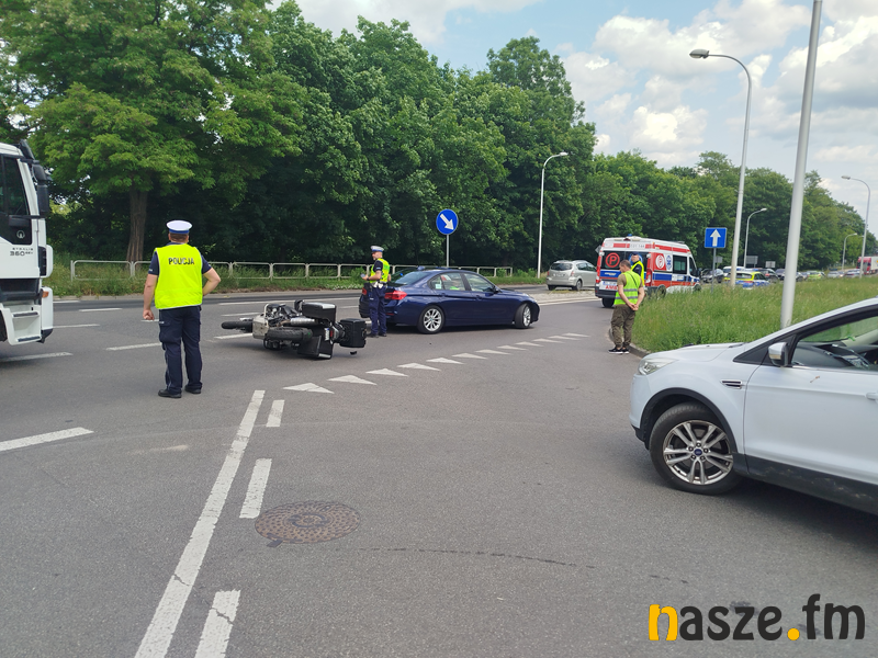 Dzisiejsze wczesne popołudnie w centrum Sieradza z groźnie wyglądającym zdarzeniem drogowym. Na skrzyżowaniu ulic Sienkiewicza, Toruńskiej i Klonowej doszło do wypadku z udziałem samochodu osobowego i motocyklisty. Poszkodowany został 35-letni kierujący jednośladem.