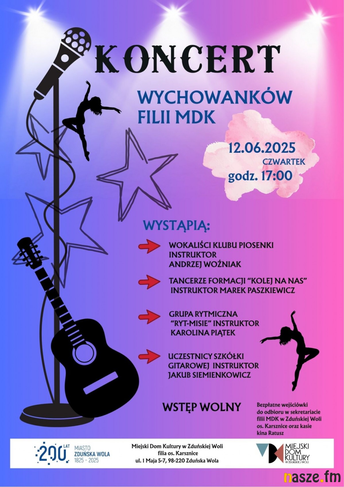 Koncert odbędzie się 12 czerwca o godz. 17:00, Filia Miejskiego Domu Kultury os. Karsznice, ul. 1 Maja 5-7. Wstęp wolny