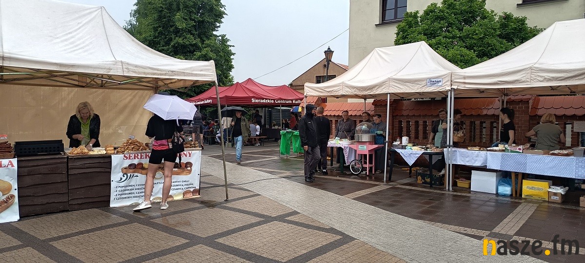Jarmark odbył się na placu przed Teatrem Miejskim w Sieradzu w sobotnie popołudnie. Pogoda nie przestraszyła mieszkańców miasta. Z parasolami i w kurtkach przeciwdeszczowych przyszli, by wspólnie świętować.