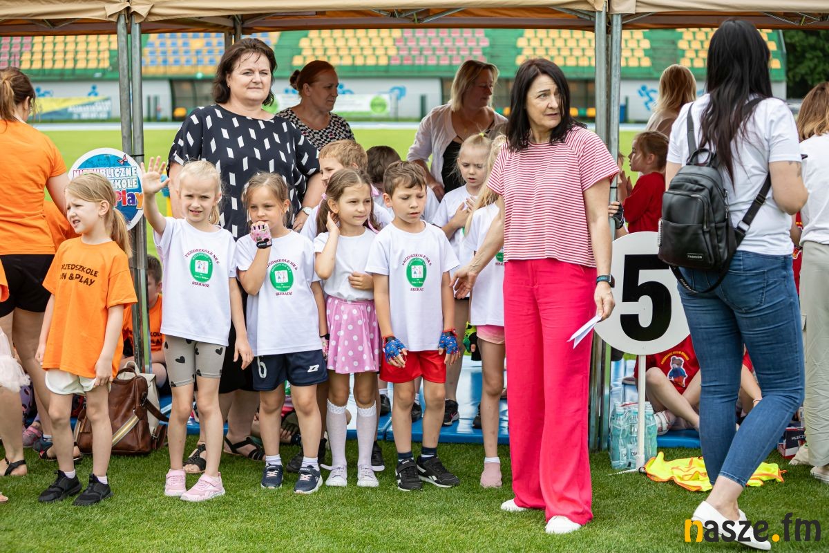 Przedszkolaki biegały na dystansie 40 m, również przez płotki, rywalizowały w sztafecie wahadłowej, konkursie przeciągania liny, a na koniec popisywały się umiejętnościami tanecznymi. Wszystkim zmaganiom towarzyszył żywiołowy doping licznie zgromadzonych kibiców, a trudy rywalizacji wynagrodziły złote medale i nagrody dla wszystkich uczestników. Przedszkola biorące udział w igrzyskach otrzymały również pamiątkowe statuetki oraz upominki ufundowane przez Sieradzką Spółdzielnię Mieszkaniową.