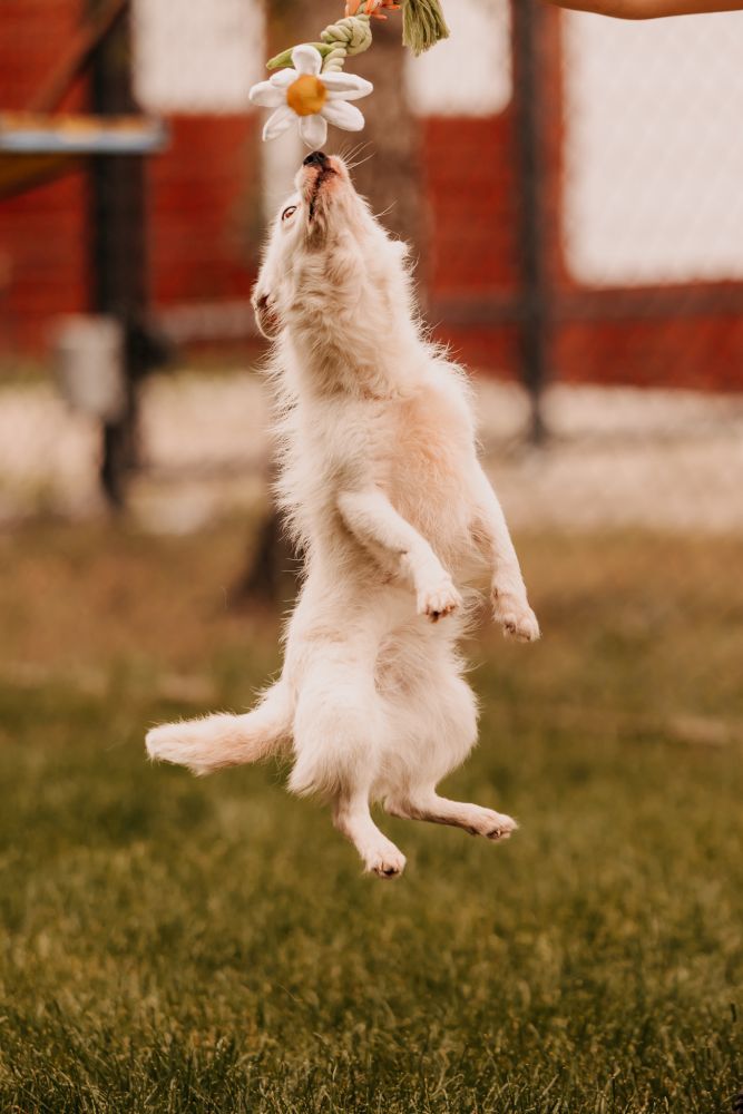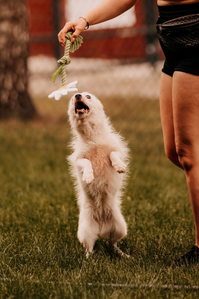 Pianka Śnieżnobiała, drobna jak chmurka i wypełniona po brzegi radością życia – taka właśnie jest nasza Pianka. Już sam jej widok poprawia humor – to jedna z tych istot, które przypominają, że codzienność może być piękna. Gdy po raz pierwszy weszła na wybieg, z gracją wskoczyła na podest i… zainteresowała się opakowaniem smaczków. Na szczęście zainterweniowaliśmy, zanim zorganizowała degustację :D To typowa psia psotka – z pomysłem na każdy moment dnia.