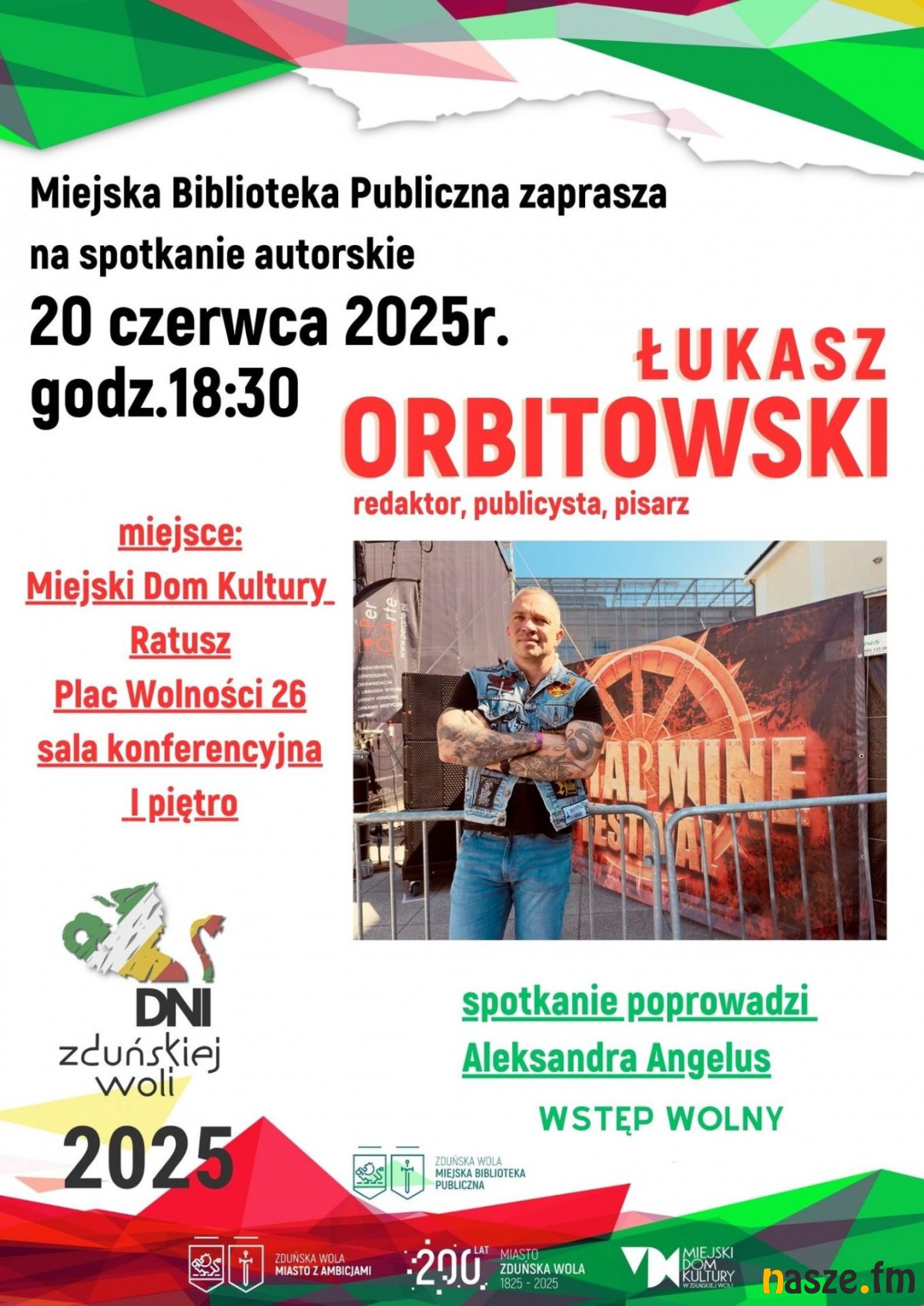Na godz. 18.30 zaplanowano spotkanie z Łukaszem Orbitowskim, pisarzem, felietonistą. Laureat Paszportu Polityki i Nagrody Zajdla, nominowany do Nagrody Literackiej Nike oraz Nagrody Literackiej Gdynia. Ponadto zagorzały wielbiciel muzyki i tekstyliów kapel metalowych. Autor powieści, m.in. Inna dusza, Kult czy Wróg. To spotkanie będzie w sali wielofunkcyjnej Ratusza. Poprowadzi je nasza redakcyjna koleżanka - Aleksandra Angelus.