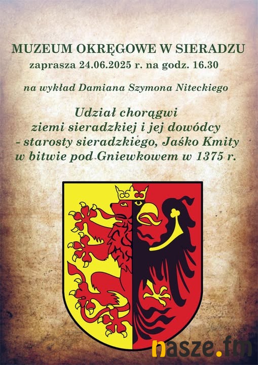 Miłośnicy historii będą mieli kolejną okazję, by zajrzeć do Muzeum Okręgowego. We wtorek 24.06.br. placówka zaprasza na prelekcję o udziale chorągwi ziemi sieradzkiej i jej dowódcy - starosty sieradzkiego Jaśko Kmity w bitwie pod Gniewkowem 1375r. Wstęp wolny.