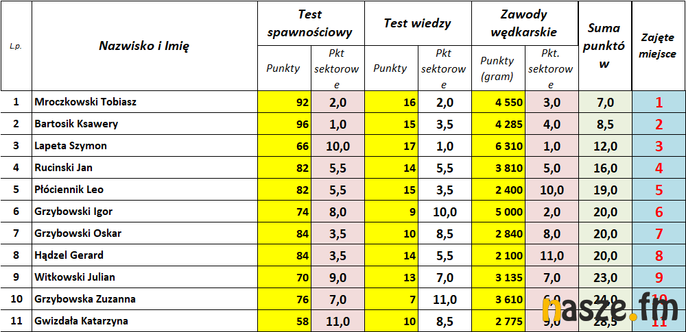 Poniżej końcowa klasyfikacja uczestników zawodów: