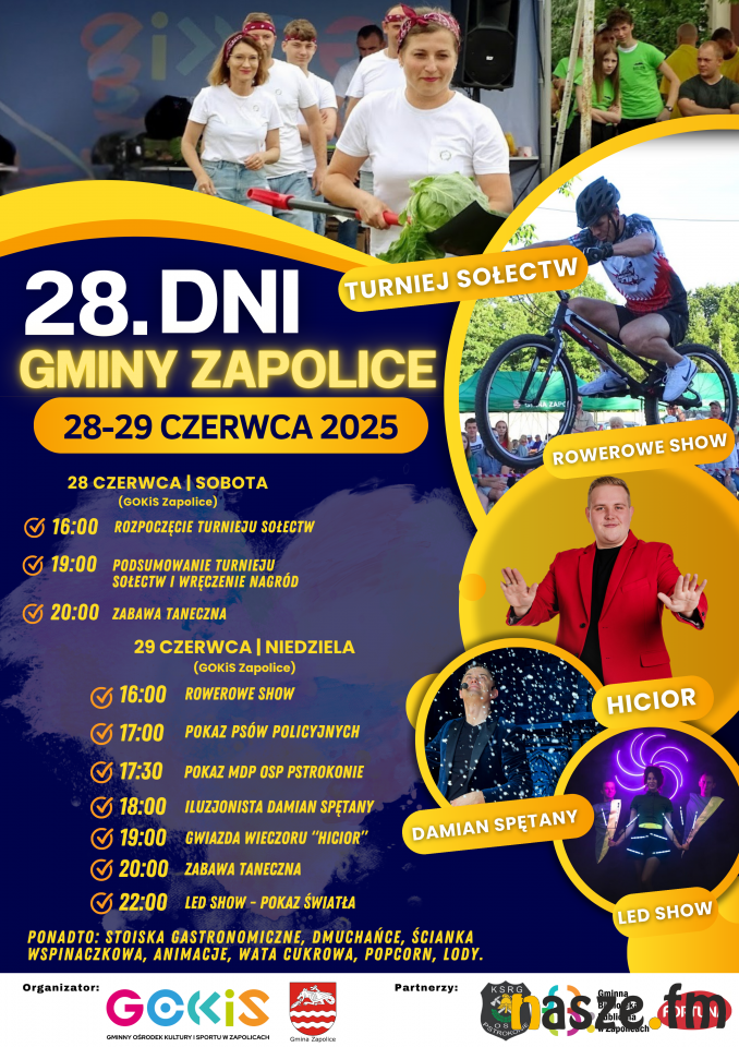 W najbliższy weekend (28 i 29 czerwca) to tegoroczne Dni Gminy Zapolice, które odbędą się na terenie Gminnego Ośrodka Kultury i Sportu w Zapolicach. Pierwszy dzień to tradycyjnie Turniej Sołectw i zabawa taneczna. Drugi dzień to natomiast Piknik Rodzinny.