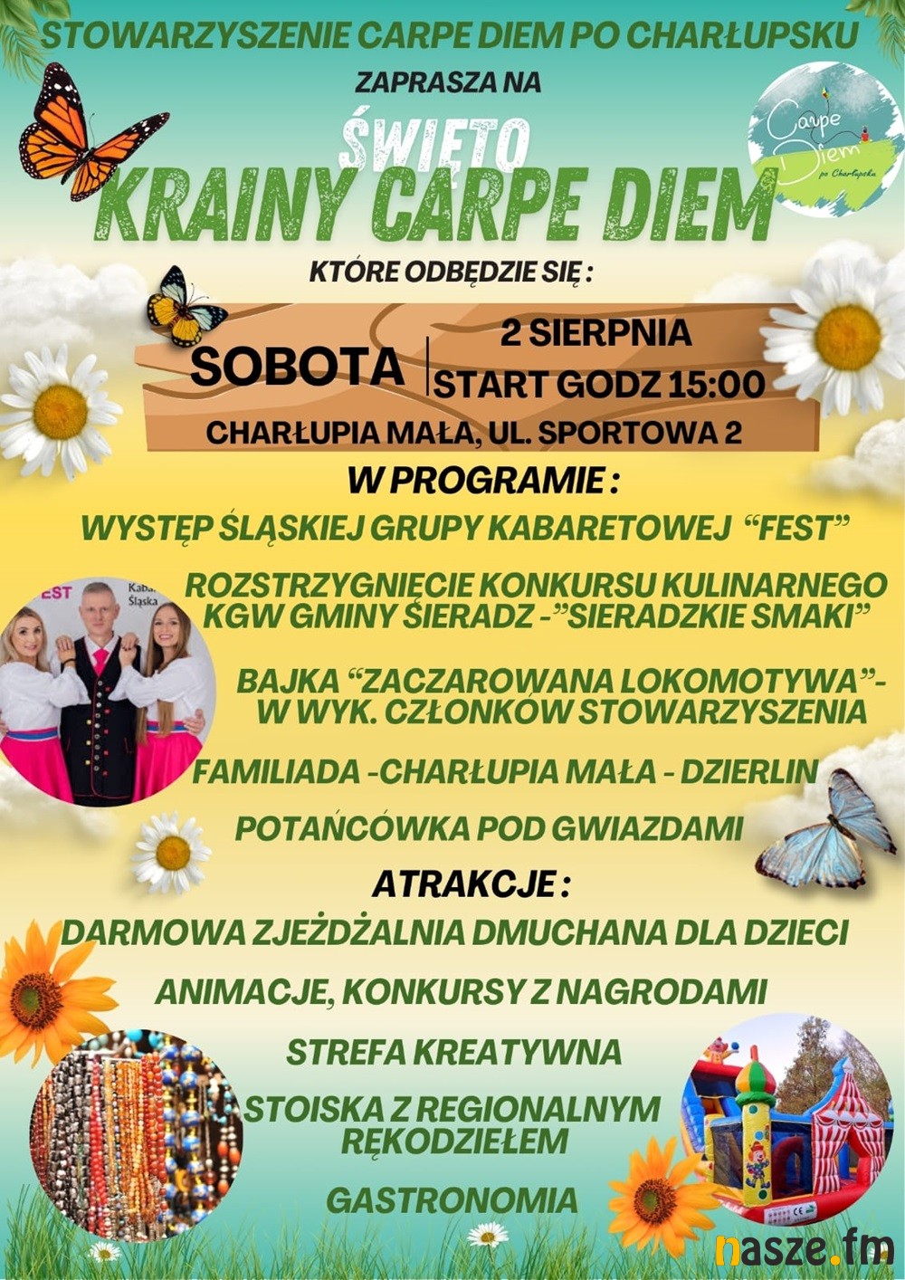 Stowarzyszenie Carpe Diem zaprasza 2 sierpnia na Święto Krainy Carpe Diem. W programie zaplanowano sporo atrakcji dla całych rodzin. Nie zabraknie animacji dla dzieci, konkursów z nagrodami, strefy kreatywnej i gastronomicznej. Będą też stoiska z rękodziełem.