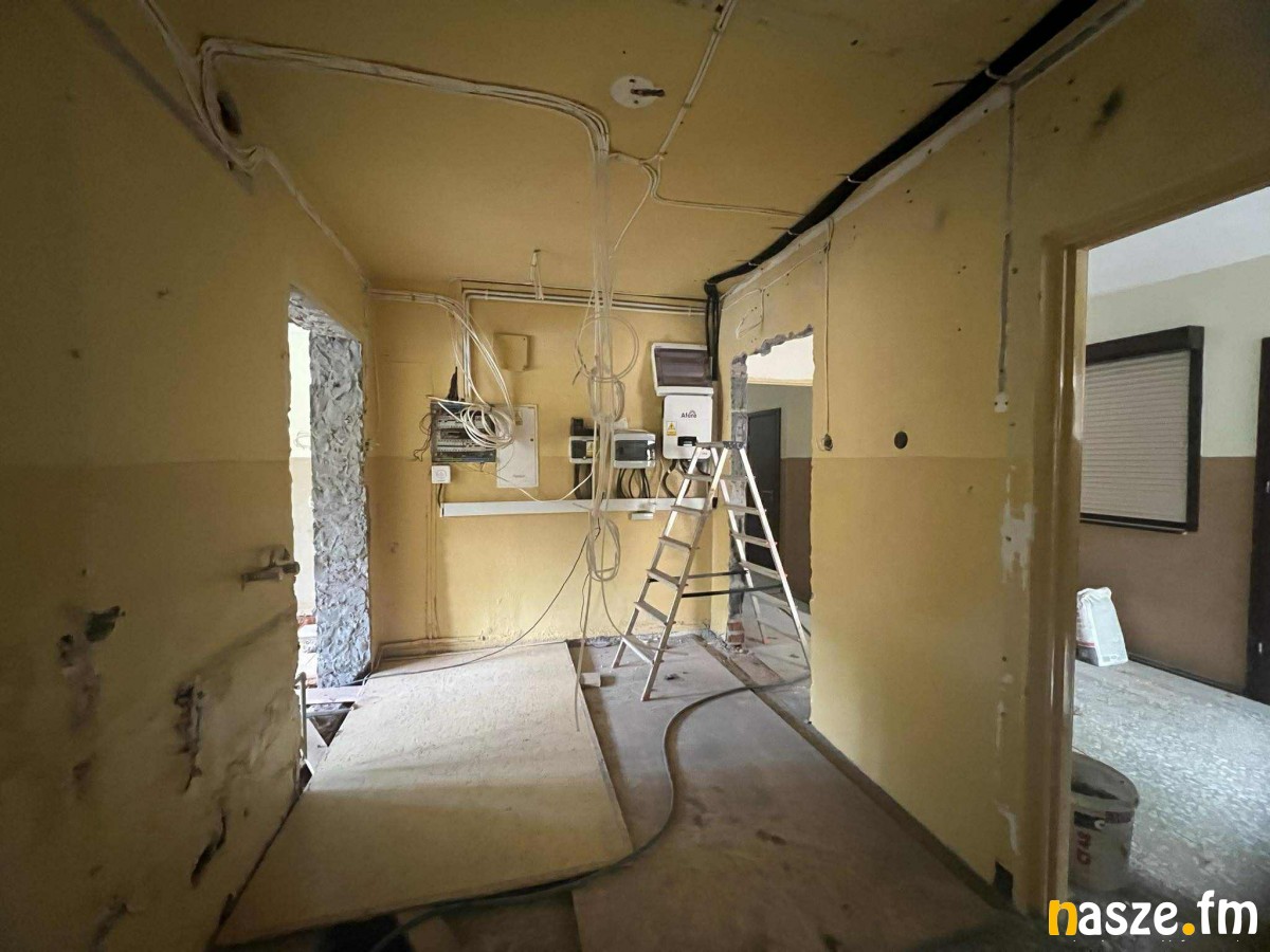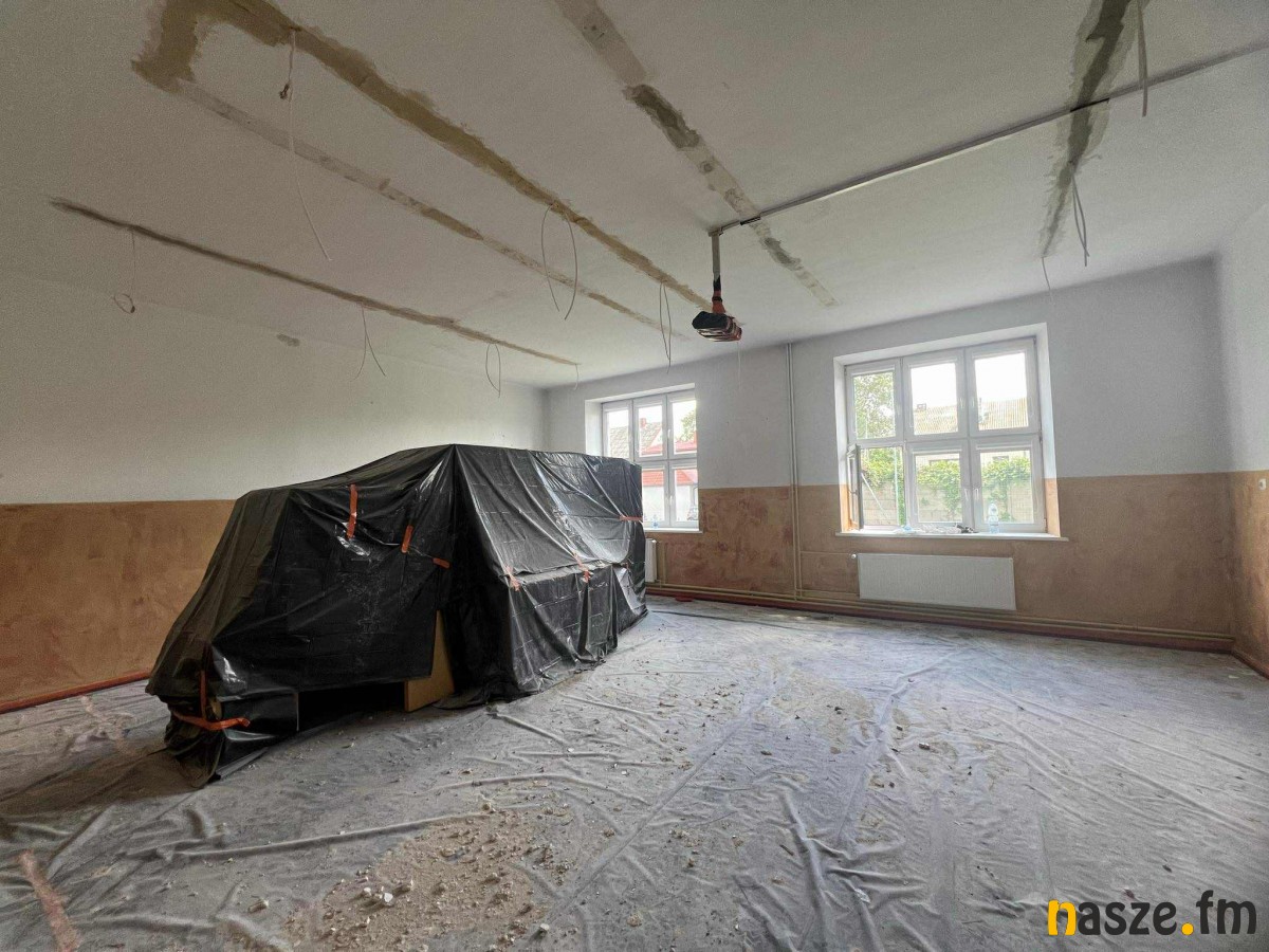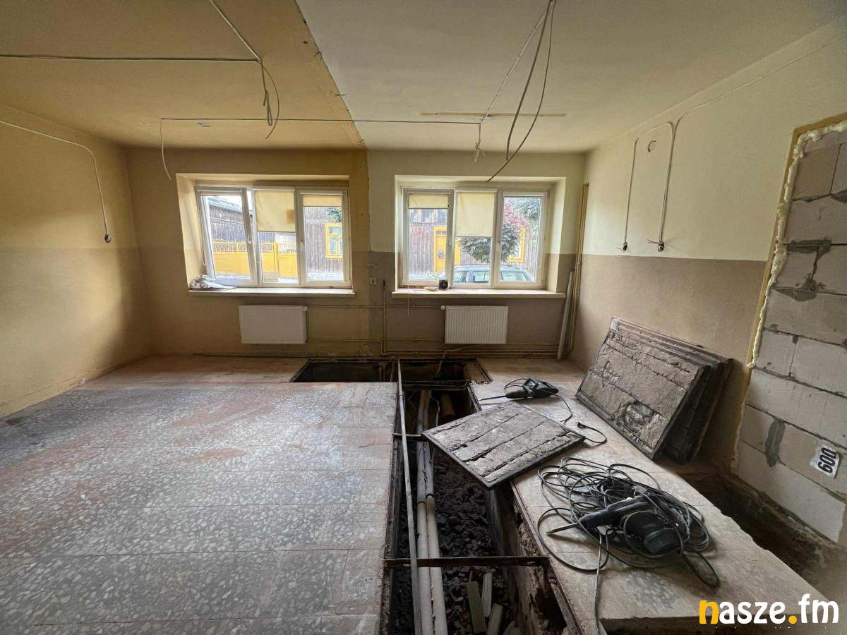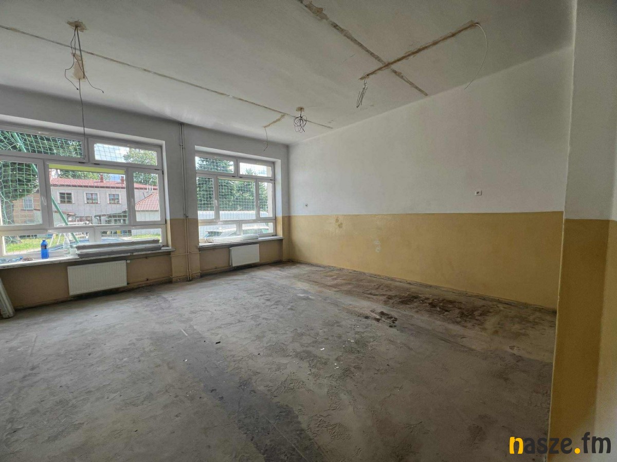 Aktualnie wykonano roboty demontażowe: skucie posadzek w pomieszczeniach objętych zakresem remontu, tj. w łazienkach na parterze, zapleczu kuchennym oraz salach lekcyjnych. Wymieniono instalacje sanitarne: przystąpiono do wymiany instalacji wodociągowej i kanalizacji sanitarnej w łazienkach na parterze, częściowo na piętrze oraz w zapleczu kuchennym.