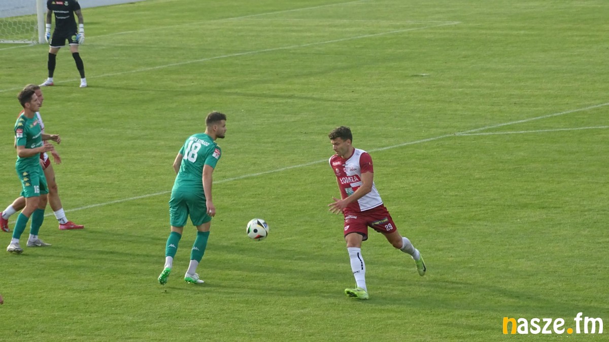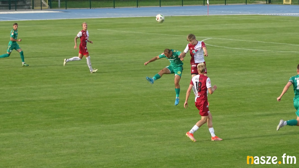 W wyjściowym składzie pojawiło się trzech nowych zawodników – Jakub Murat, Duilio i Kacper Drzazga. Pierwsza połowa nie przyniosła goli, ale więcej konkretów w grze ofensywnej mieli goście. Dwukrotnie byli blisko, by zdobyć bramkę po uderzeniu głową, ale w obu przypadkach piłka nieznacznie minęła słupek Mykyty Zelensky’iego.