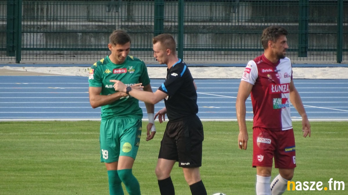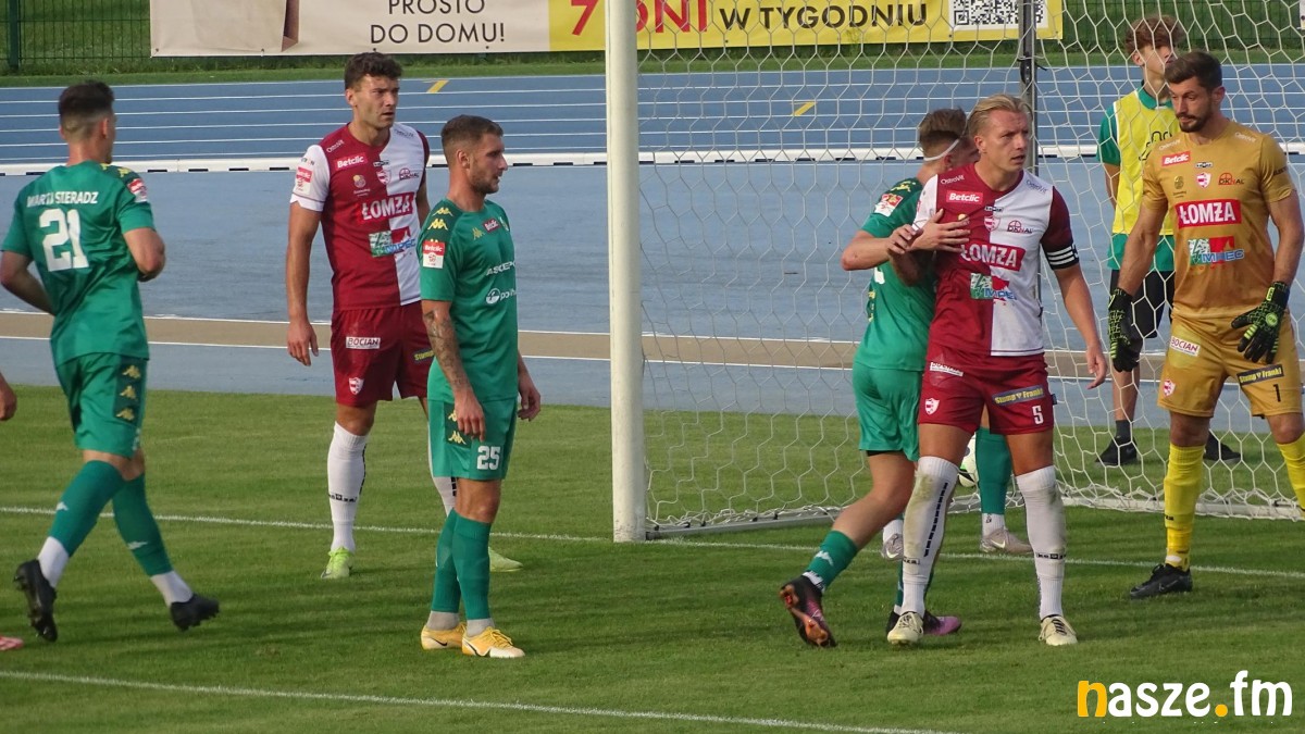 Goście dopięli swego w drugiej połowie. 61 minucie po zagraniu z prawej strony do pustej bramki trafił Patryk Zych. Trener Marek Przybył od razu zareagował decydując się na dwie zmiany. Z boiska zeszli: Drzazga i Jakub Piela, a pojawili się Jakub Janiszewski i Piotr Mielczarek, który po roku wrócił do drużyny Biało-Zielonych. Chwilę później sfaulowany w polu karnym został Damian Ślesicki. Sędzia odgwizdał jedenastkę, a rzut karny wykonał sam poszkodowany. Obrońca sieradzan pewnie uderzył i dał swojej drużynie bramkę wyrównującą. Niestety okazało się to za mało na zespół z Łomży. W 92 minucie piłkarz rywali uderzył z główki, Zelenskyi odbił piłkę, ale ta trafiła do Huberta Antkowiaka, który pewnie dobił ją do bramki.