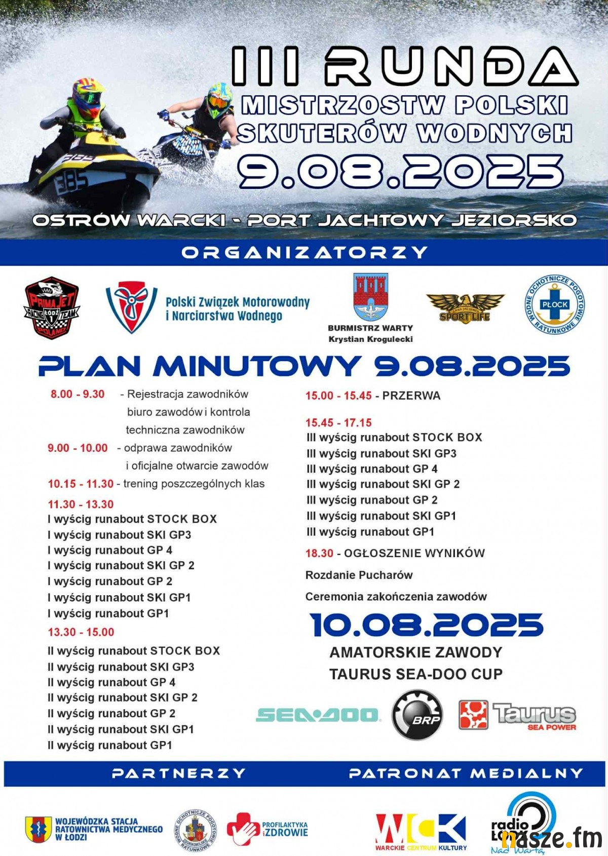 W sobotę w porcie jachtowym w Ostrowie Warckim odbędzie się III runda mistrzostw Polski skuterów wodnych. Z kolei na niedzielę zaplanowano amatorskie zawody Taurus Sea-Doo Cup.