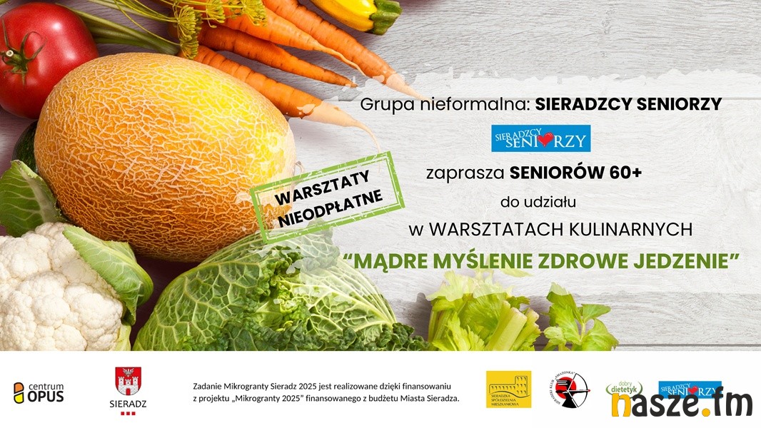 Sieradzcy Seniorzy działający przy Sieradzkiej Spółdzielni Mieszkaniowej dziękują za ogromne zainteresowanie warsztatami kulinarnymi "Mądre myślenie zdrowe jedzenie" w ramach środków pozyskanych z programu realizowanego przez Miasto Sieradz i Centrum OPUS Mikrogranty Sieradz 2025.
