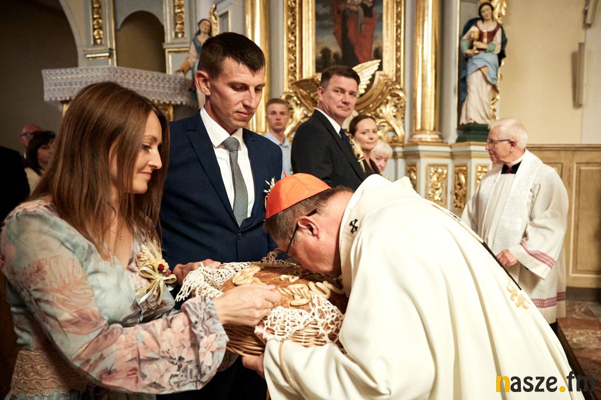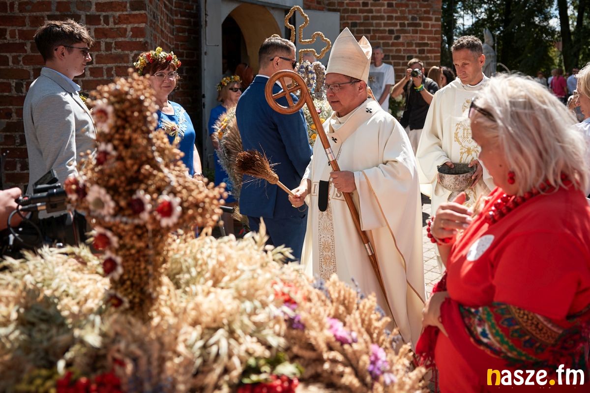 - To wspaniałe widzieć te wszystkie wieńce dożynkowe, wchodząc do tego kościoła - mówił podczas nabożeństwa do rolników.