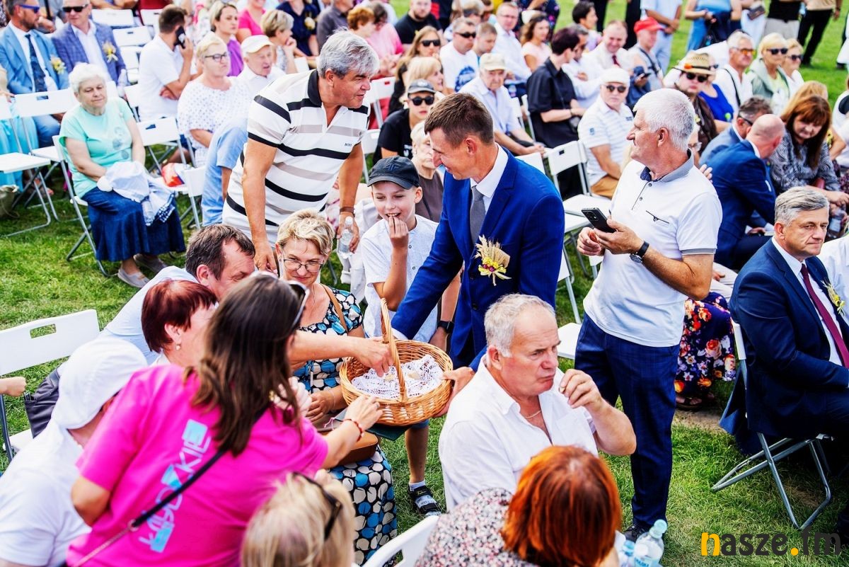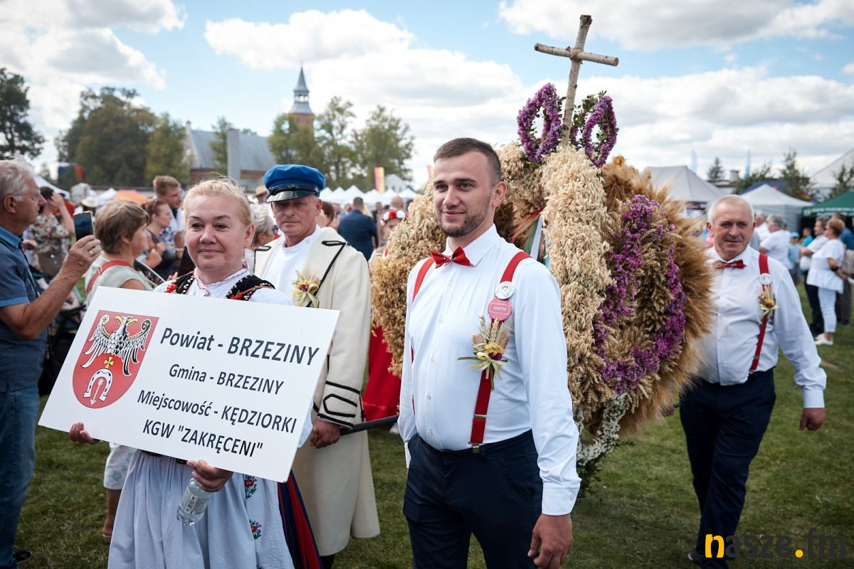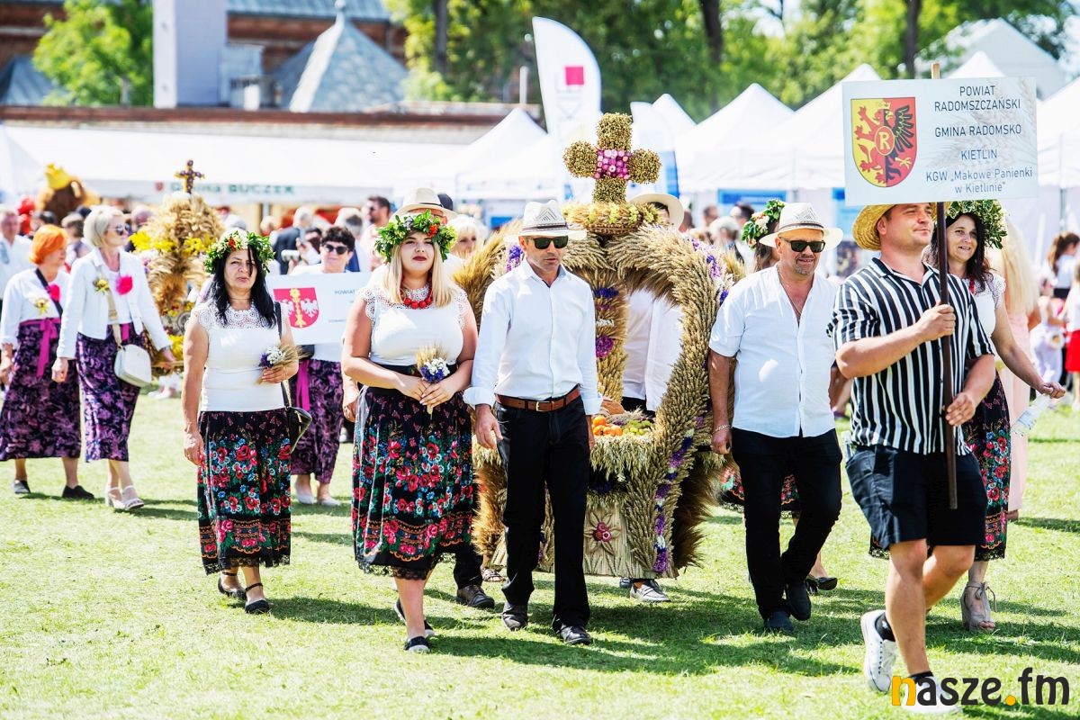 Po mszy barwny korowód prowadzony przez orkiestrę dętą z Buczku przeszedł do pięknie udekorowanej sceny obrzędowej. Szły w nim delegacje wieńcowe, zespoły ludowe i setki mieszkańców. Na scenie starostowie dożynek - Agnieszka Węglewska i Paweł Michalak, rolnicy z gminy Buczek, przekazali Joannie Skrzydlewskiej, marszałek województwa bochen chleba wypieczonego z tegorocznych plonów.