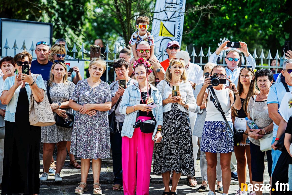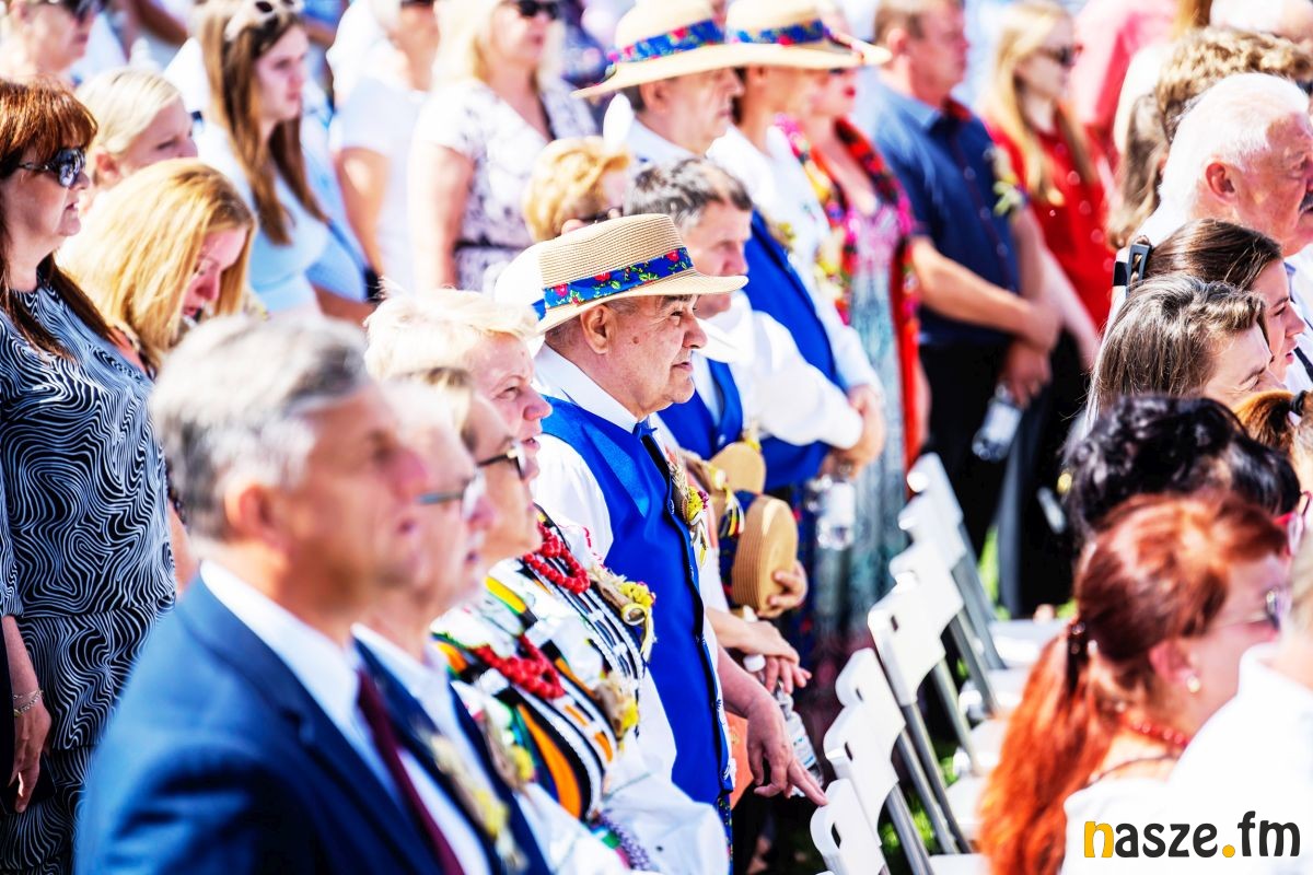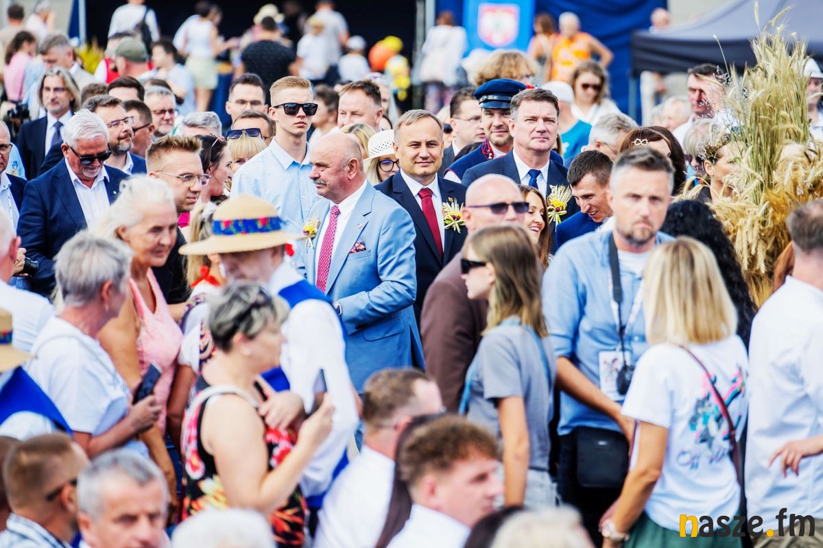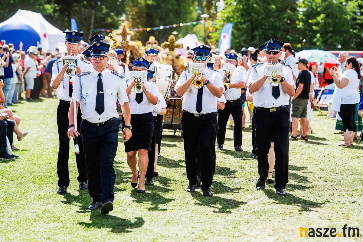 Po mszy barwny korowód prowadzony przez orkiestrę dętą z Buczku przeszedł do pięknie udekorowanej sceny obrzędowej. Szły w nim delegacje wieńcowe, zespoły ludowe i setki mieszkańców. Na scenie starostowie dożynek - Agnieszka Węglewska i Paweł Michalak, rolnicy z gminy Buczek, przekazali Joannie Skrzydlewskiej, marszałek województwa bochen chleba wypieczonego z tegorocznych plonów.