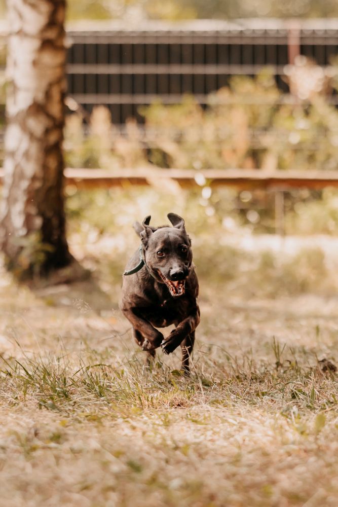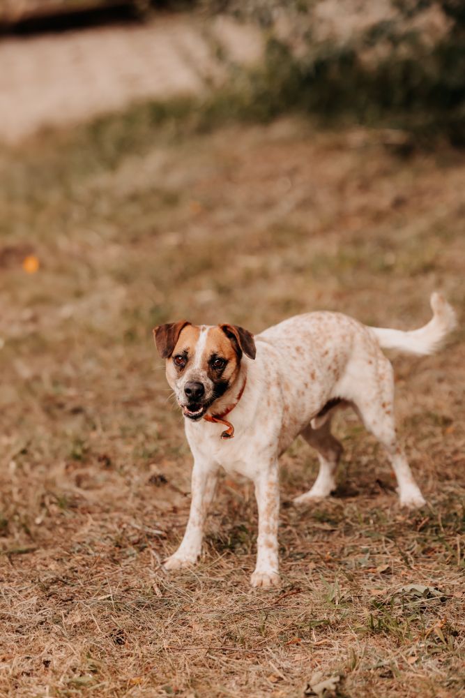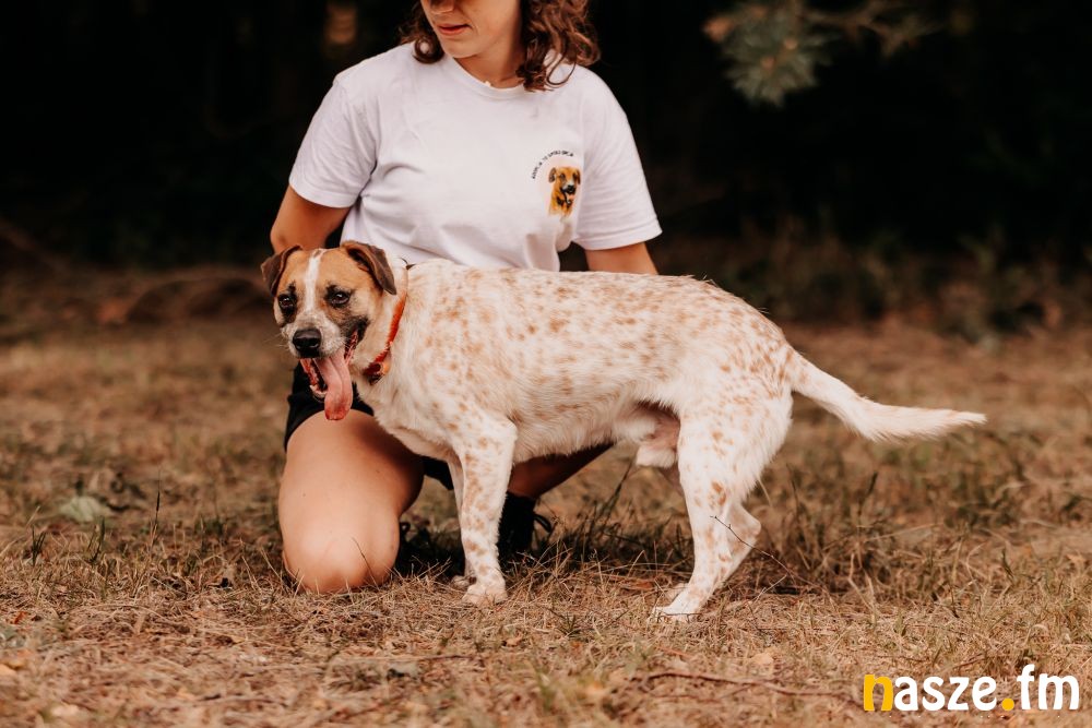 Młody, zdrowy, przyjacielski i zawsze gotowy na kontakt z człowiekiem. Uwielbia smaczki, co czyni z niego świetnego kandydata do nauki nowych komend, choć na razie ich nie zna, szybko łapie, o co chodzi, gdy widzi nagrodę. Na spacerze początkowo pędzi przed siebie, ale po chwili dopasowuje tempo do opiekuna. Jest ciekawski, radosny i trudno mu ustać w miejscu. To pies, który codziennie przypomni Ci, jak dobrze jest cieszyć się chwilą.