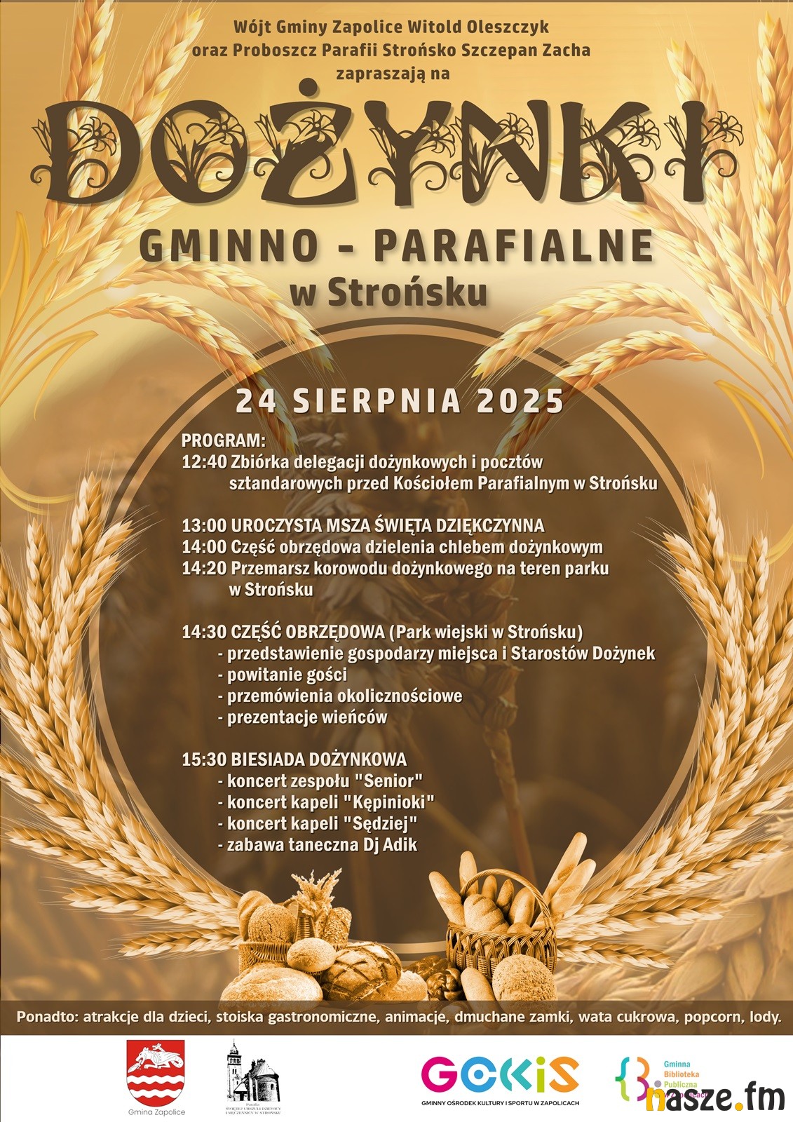 Rolnicy z gminy Zapolice podziękują za tegoroczne plony. Dożynki Gminno - Parafialne w najbliższą niedzielę, 24 sierpnia, odbędą się w Strońsku.