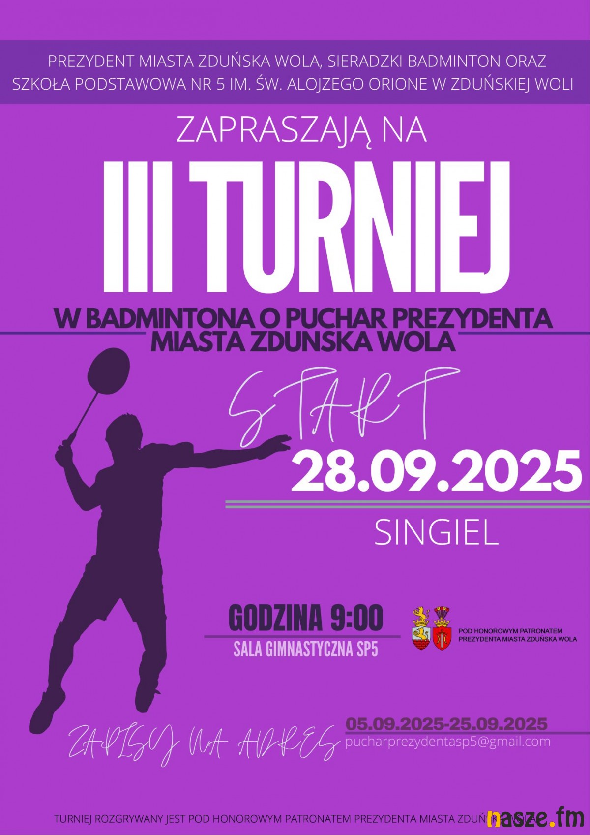 W niedzielę w hali Szkoły Podstawowej nr 5 w Zduńskiej Woli odbędą się zawody w badmintona. Zapisy trwają do jutra.