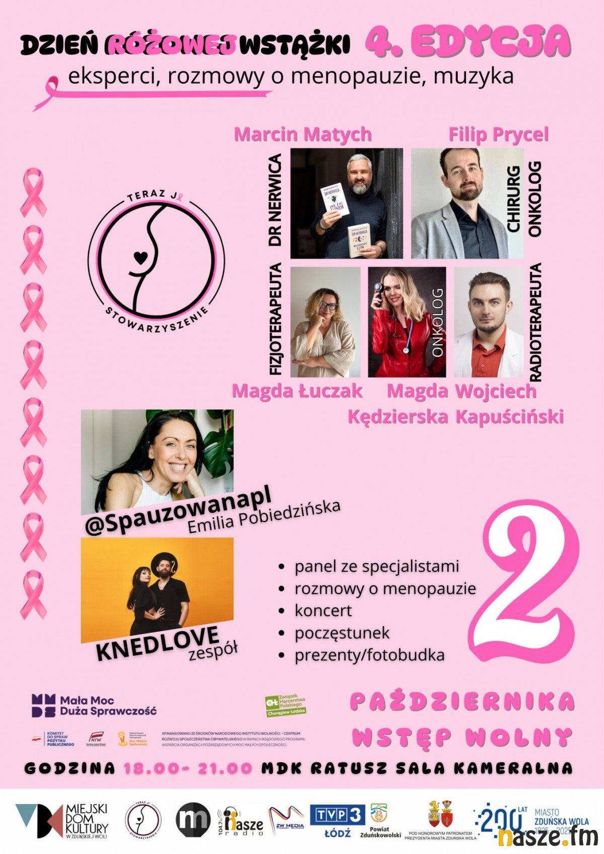 Stowarzyszenie "Teraz Ja" we współpracy z Miejskim Domem Kultury już po raz czwarty organizuje Dzień Różowej Wstążki. Jest to wydarzenie edukacyjno-kulturalno-rozrywkowe, któremu przyświeca jeden cel - podnoszenie świadomości i profilaktyka raka piersi.