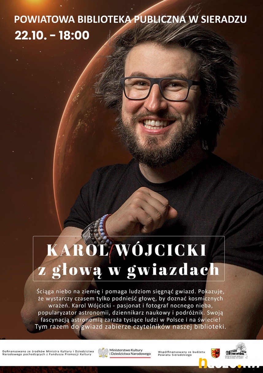 Karol Wójcicki, twórca największego w Polsce astronomicznego fanpage'a "Z głową w gwiazdach" będzie w środę kolejnym gościem biblioteki powiatowej w Sieradzu w ramach festiwalu literackiego CzyTAKI.
