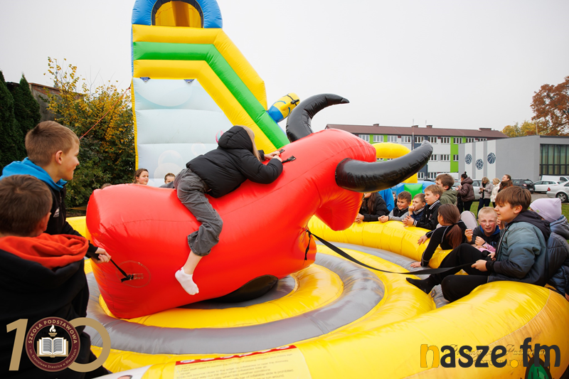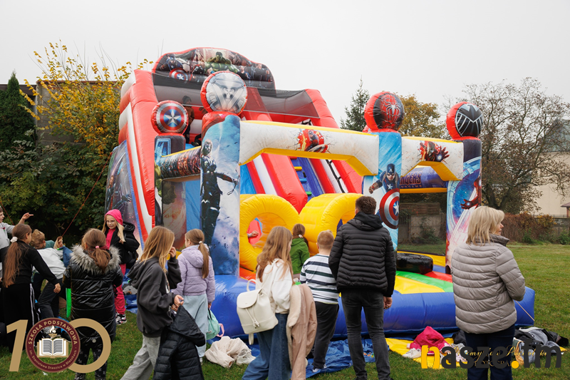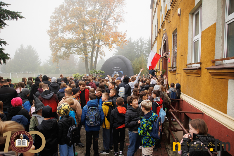 Nie zabrakło również dmuchańców oraz gorącego poczęstunku dla wszystkich. Dużym zainteresowaniem cieszyło się mobilne planetarium. W specjalnej kopule uczniowie odbyli niezwykłą podróż w kosmos, poznając tajemnice gwiazd, planet i galaktyk. Jubileuszowa zabawa była nie tylko okazją do wspomnień bogatej historii szkoły, lecz także radosnym spotkaniem pełnym śmiechu, muzyki i wspólnej zabawy.
