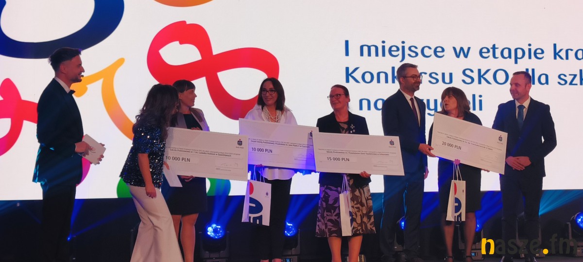 Dokonano również wręczenia czeków dla szkół. Anna Stoparczyk, dyrektor Zespołu Szkoły Podstawowej i Przedszkola im. Jana Pawła II w Czechach odebrała z rąk Krzysztofa Michalskiego, p.o. dyrektora Biura Młodego Klienta nagrodę w wysokości 10 000 zł za zajęcie III miejsca w Polsce w konkursie dla szkół.