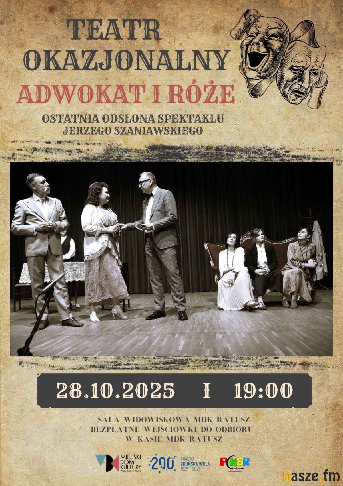 Obecnie z okazji obchodów 200-lecia nadania praw miejskich Zduńskiej Woli (1825 r.) po raz drugi wystawiona zostanie sztuka "Adwokat i róże" Jerzego Szaniawskiego, którego imieniem nazwana jest nasza Miejska Biblioteka Publiczna. Właśnie w ten sposób osoby piastujące wysokie stanowiska w samorządzie miejskim i powiatowym przyłączają się do jubileuszowych obchodów naszej małej zduńskowolskiej ojczyzny. Wszak Zduńska Wola teatrem stoi.
