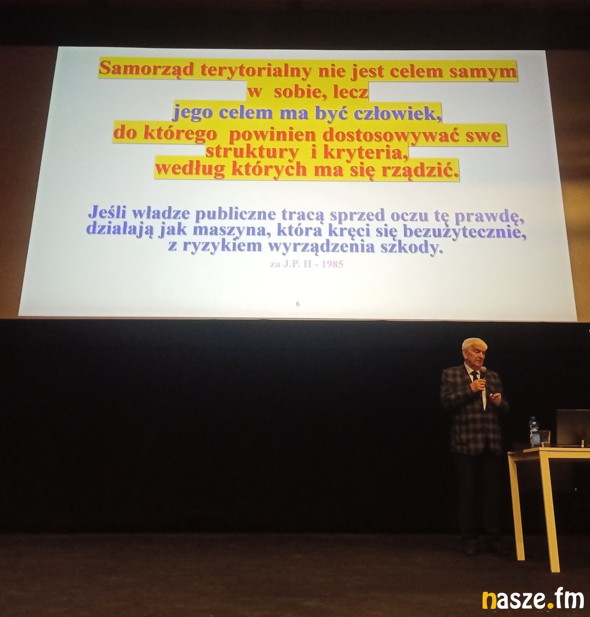 Podczas wystąpienia w sali widowiskowej zduńskowolskiego Ratusza zduńskowolanin, dr Mieczysław Janowski przybliżył uczestnikom znaczenie samorządności, jako jednego z filarów demokratycznego państwa. Zwrócił uwagę, że samorząd terytorialny to nie tylko struktura administracyjna, lecz przede wszystkim wspólnota mieszkańców, którzy wspólnie decydują o kierunku rozwoju swojego miasta, gminy czy regionu.